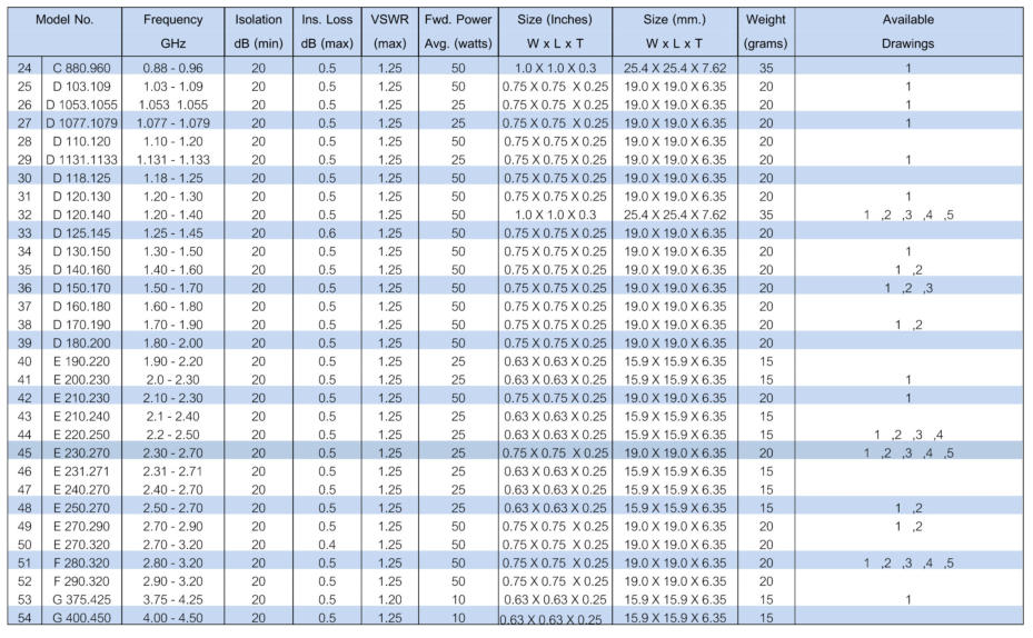 NARROWBAND (continued)These models cover various narrow bandwidth. Available drawings can be viewed by clicking on red box. Please contact usfor other frequency ranges or non-standard requirements.