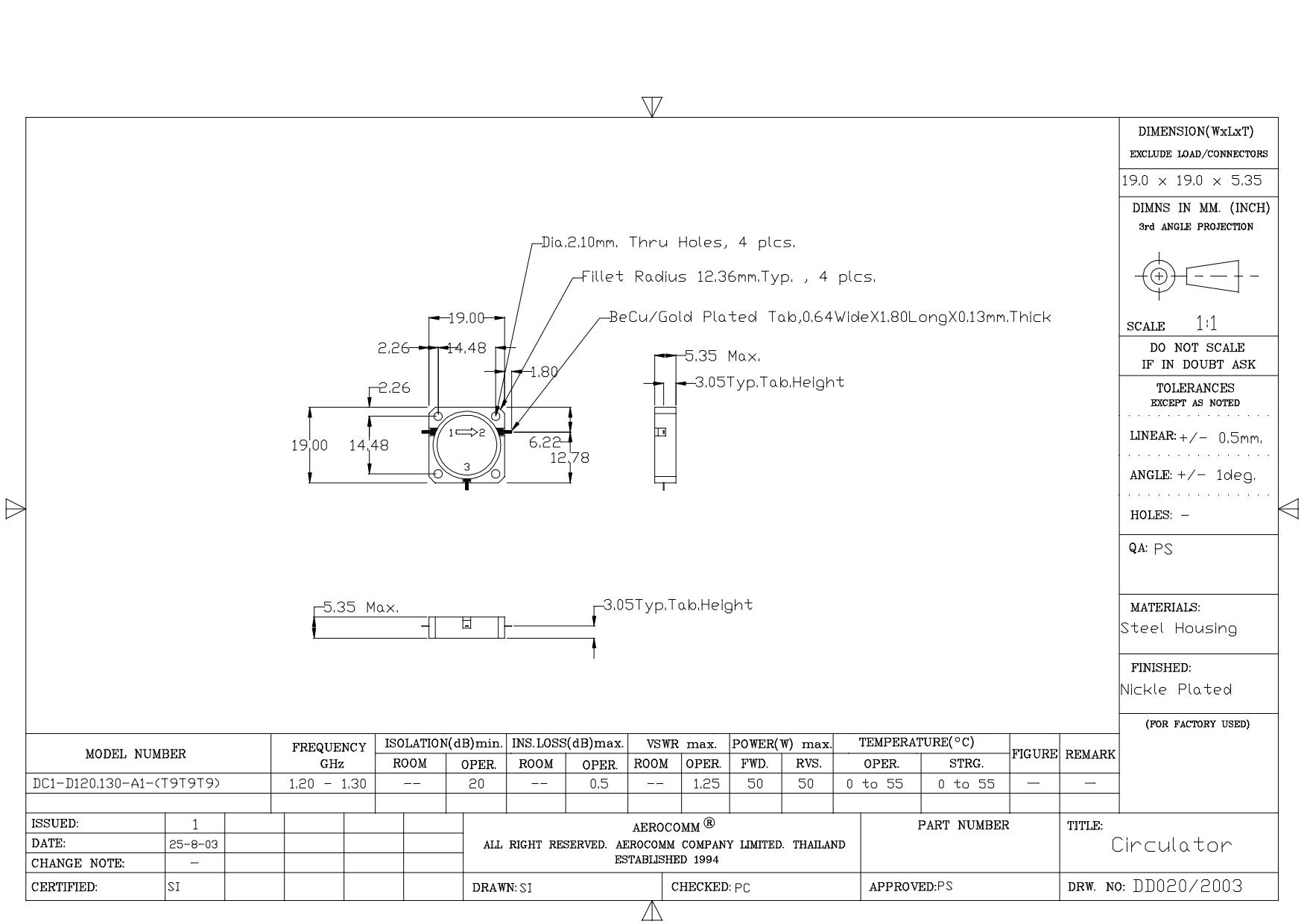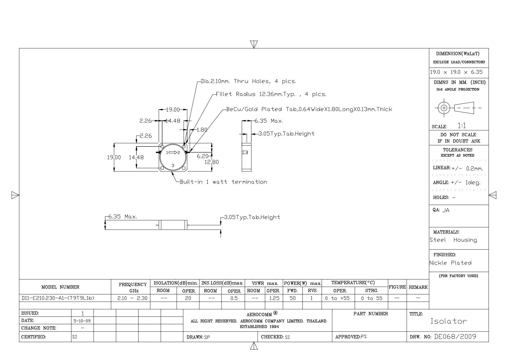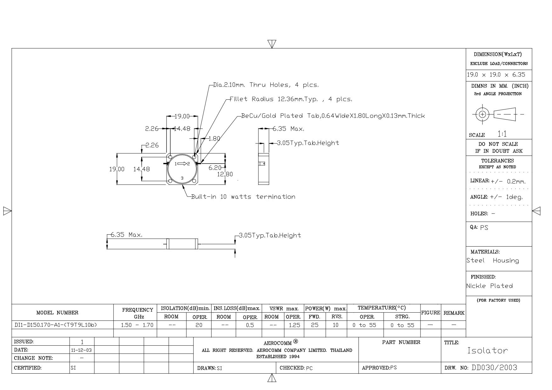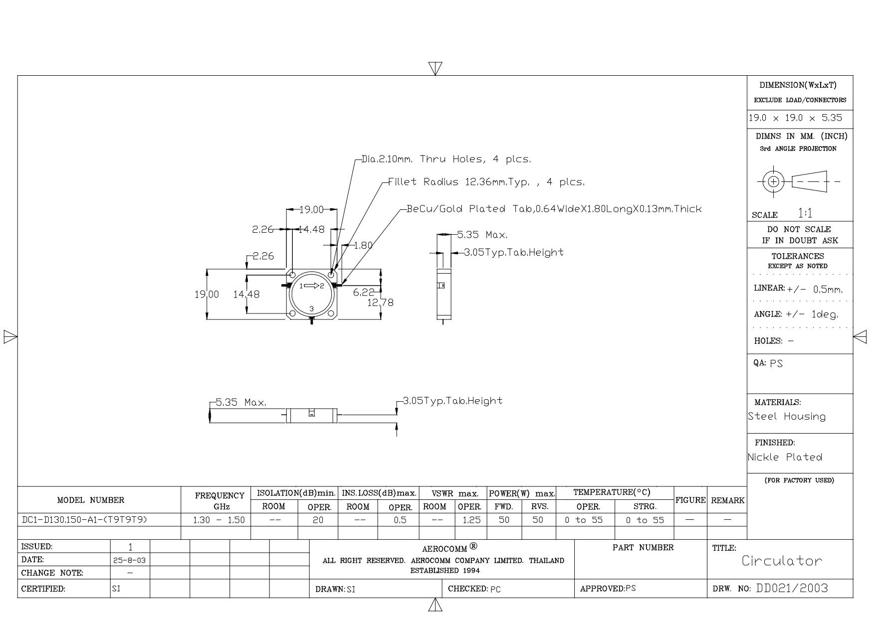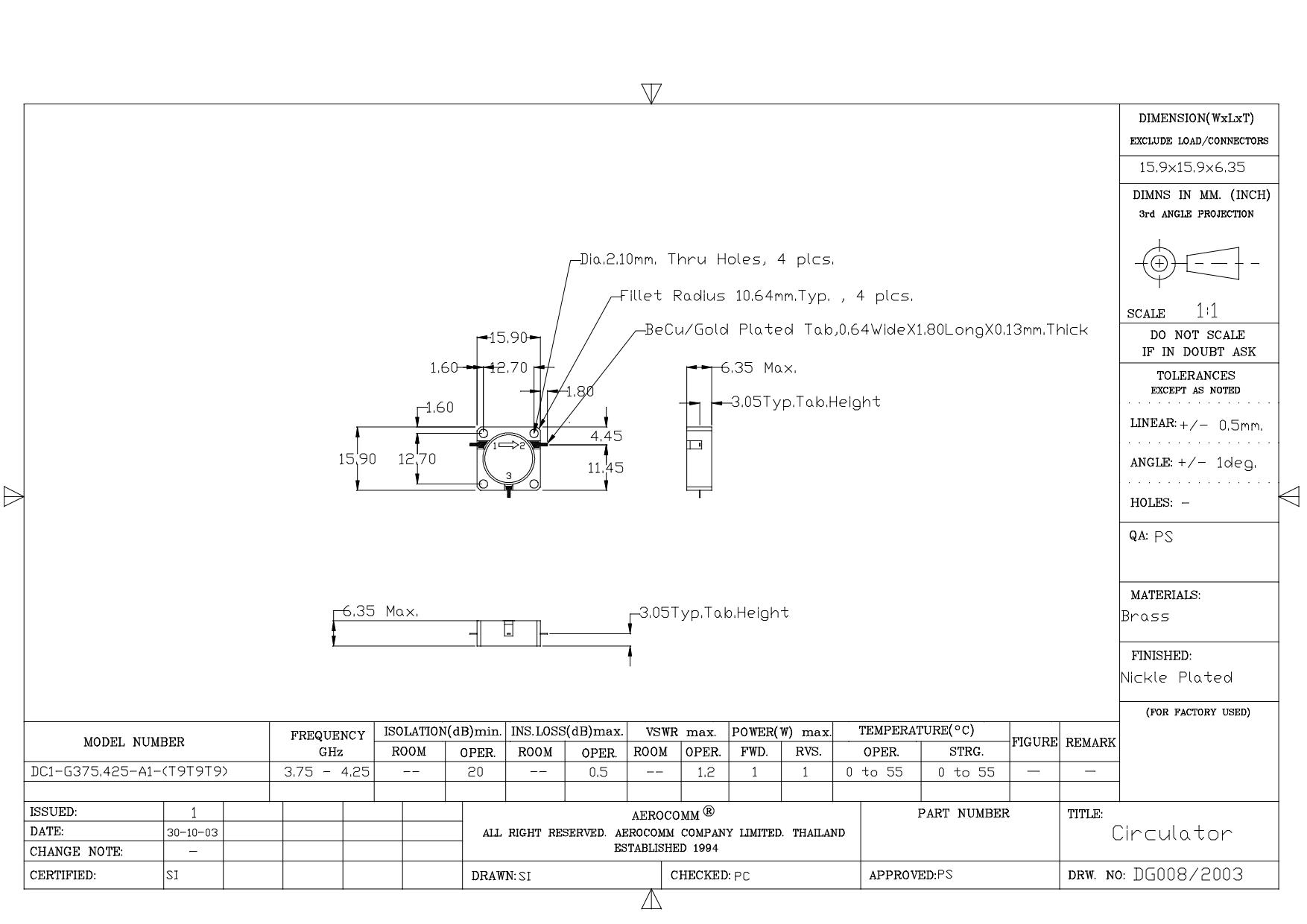 STRIPLINE DROP-IN JUNCTION ISOLATORS & CIRCULATORS, STANDARD