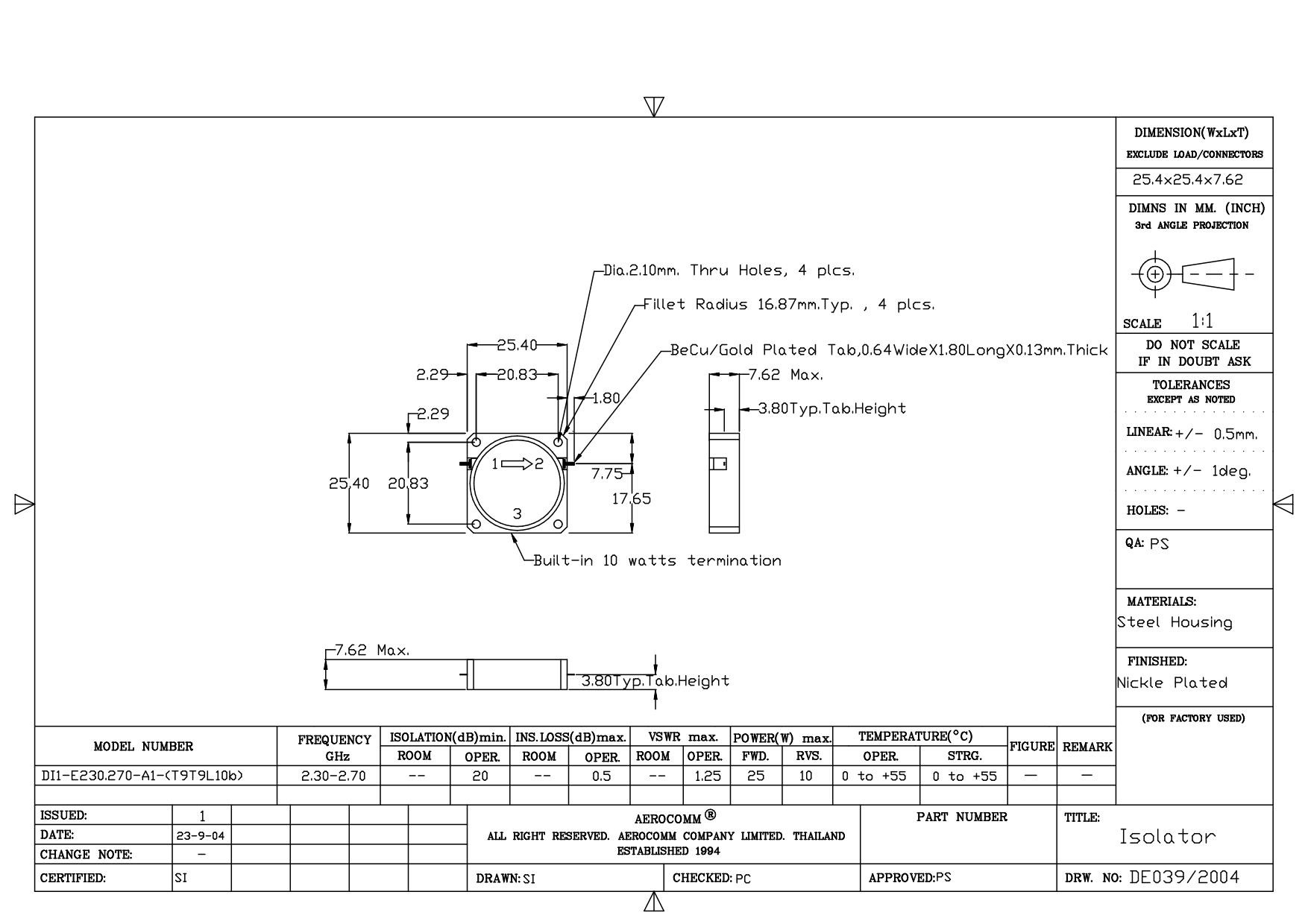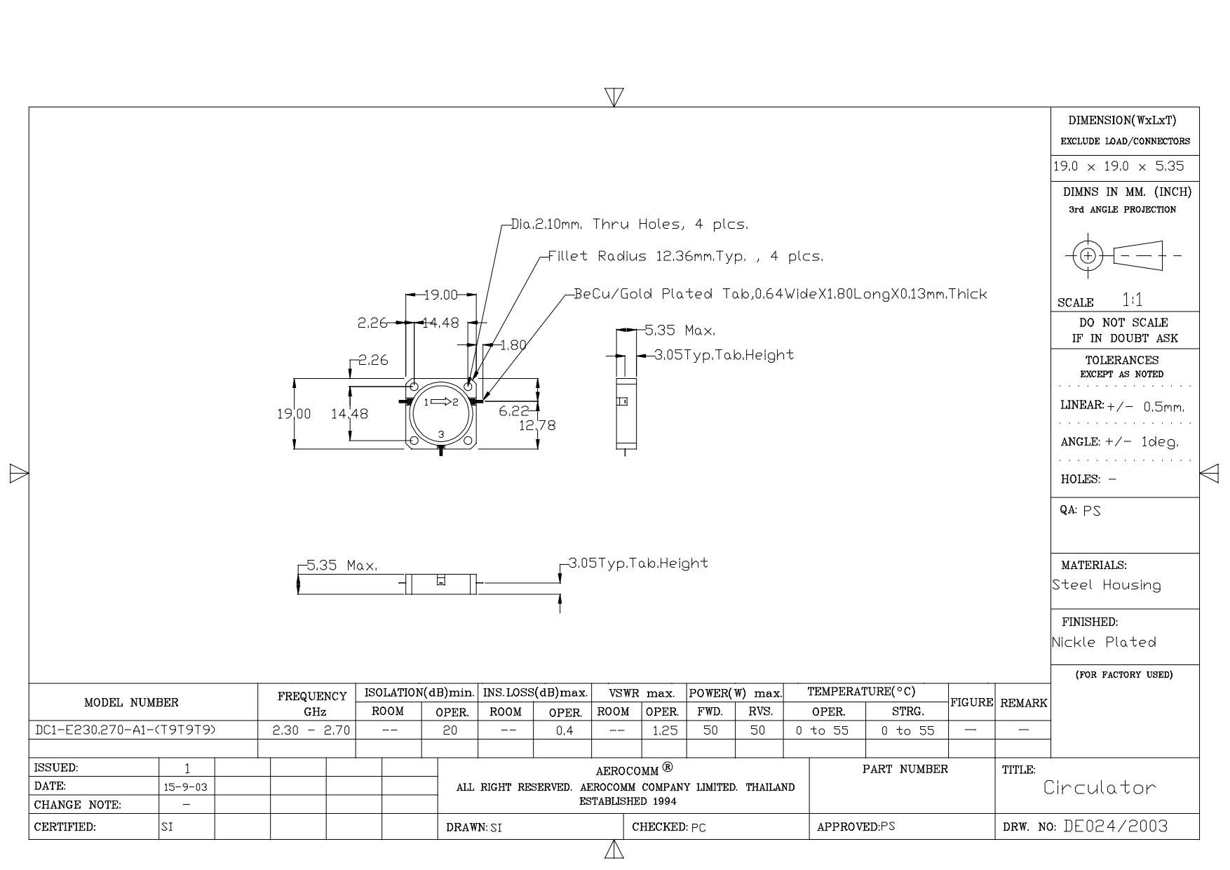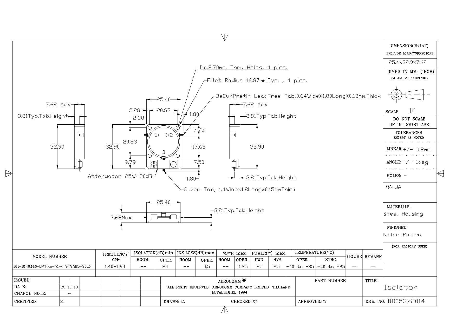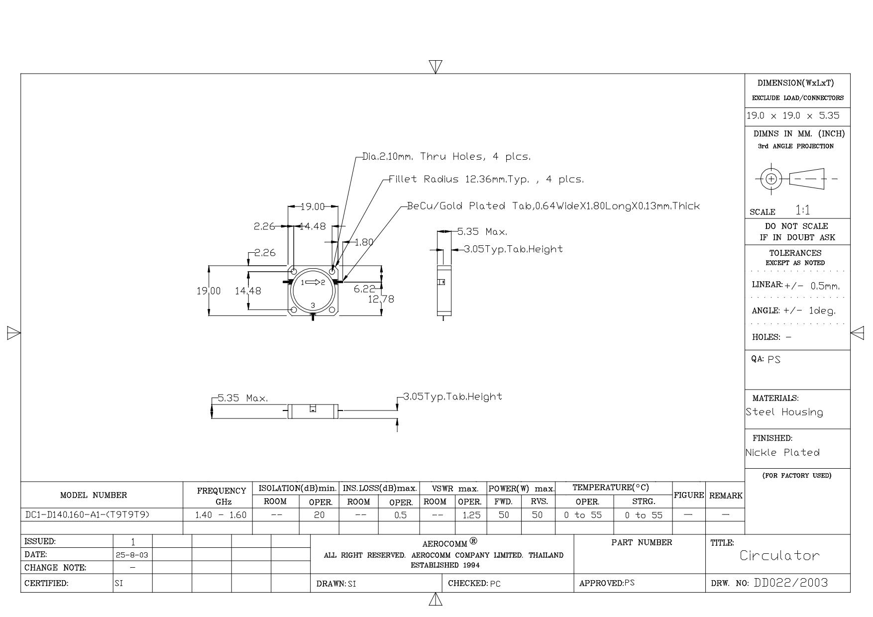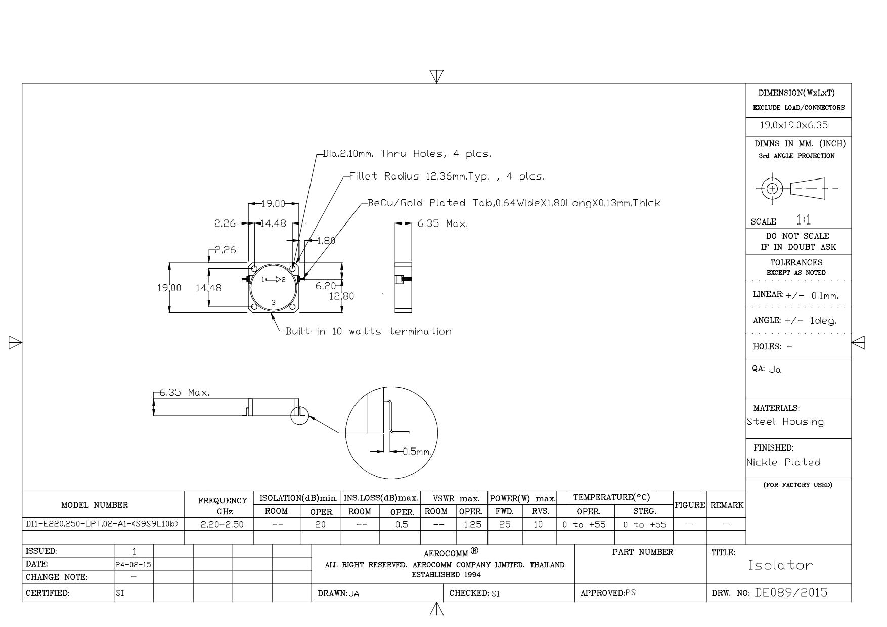STRIPLINE DROP-IN JUNCTION ISOLATORS & CIRCULATORS, STANDARD