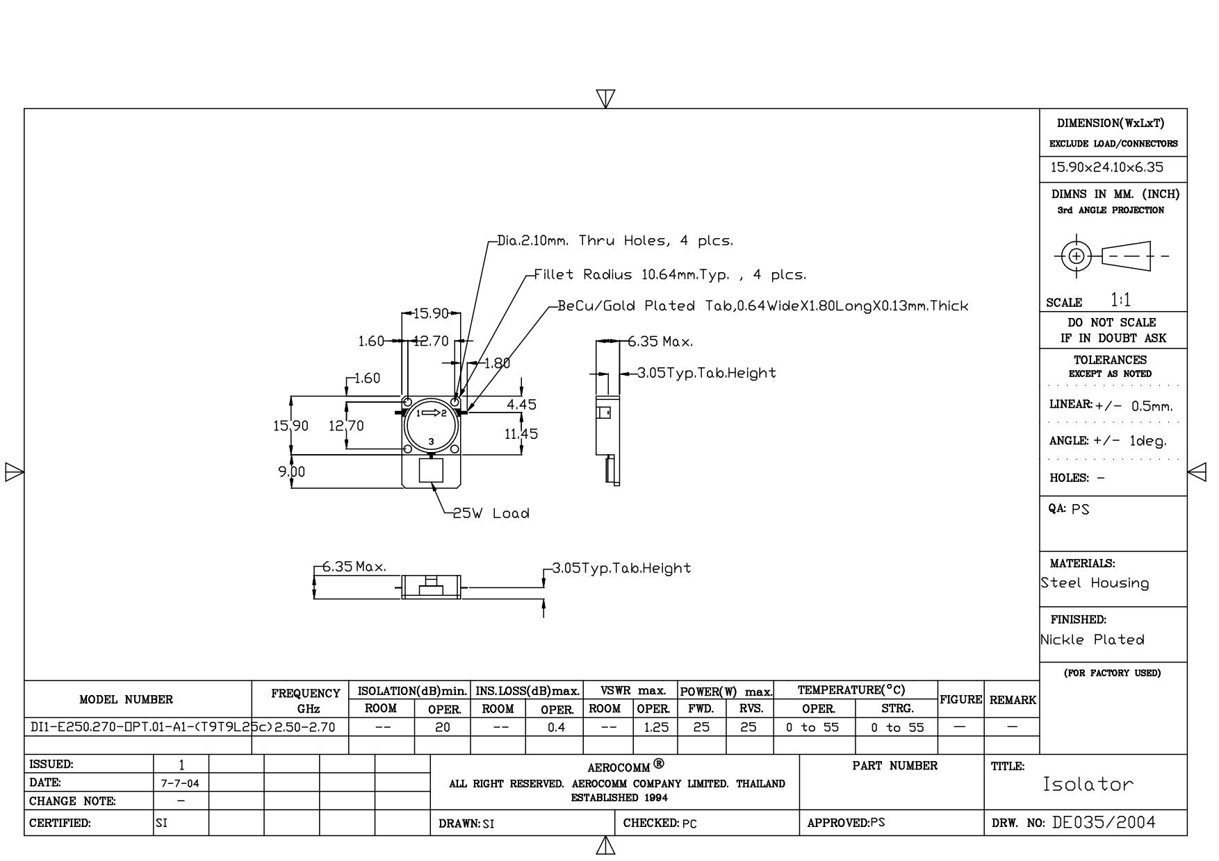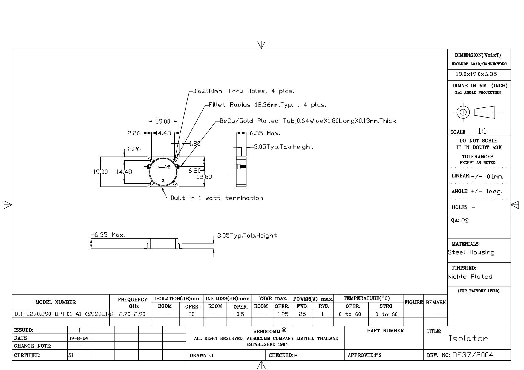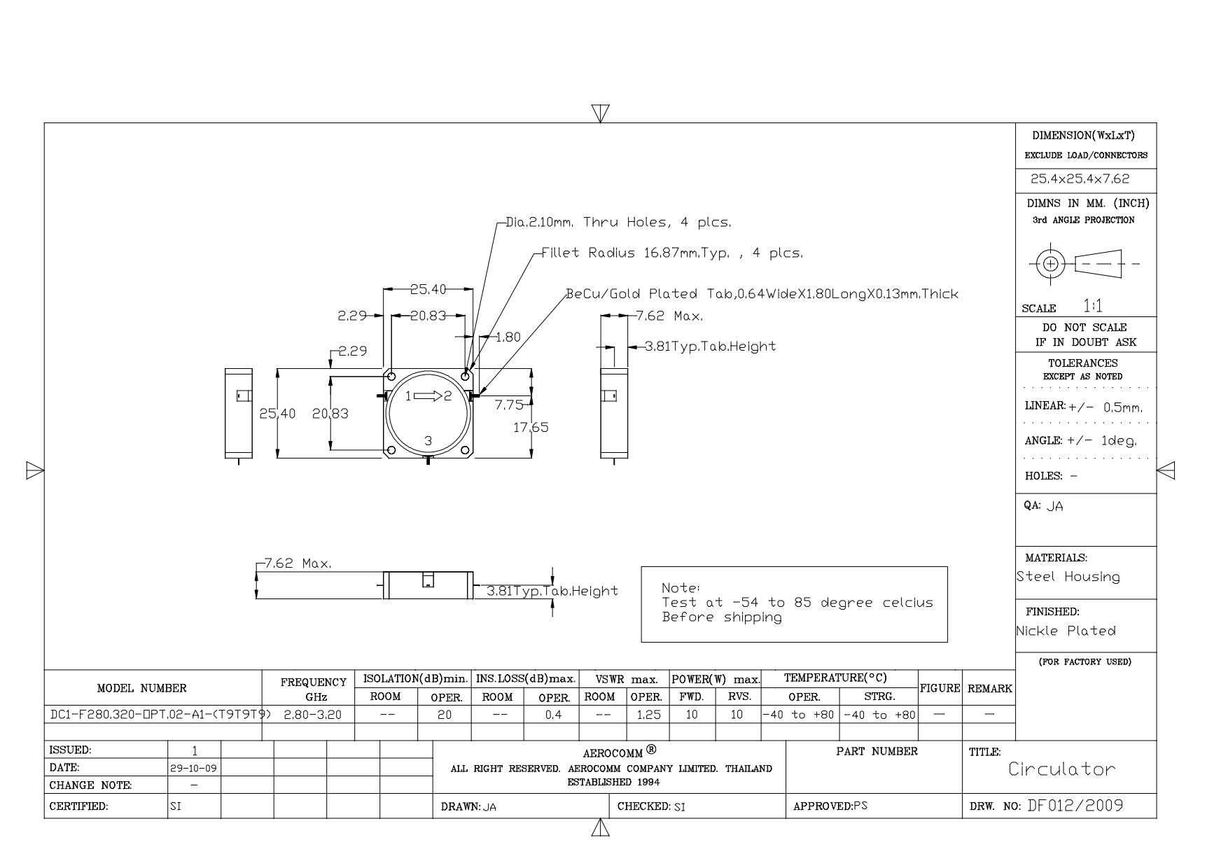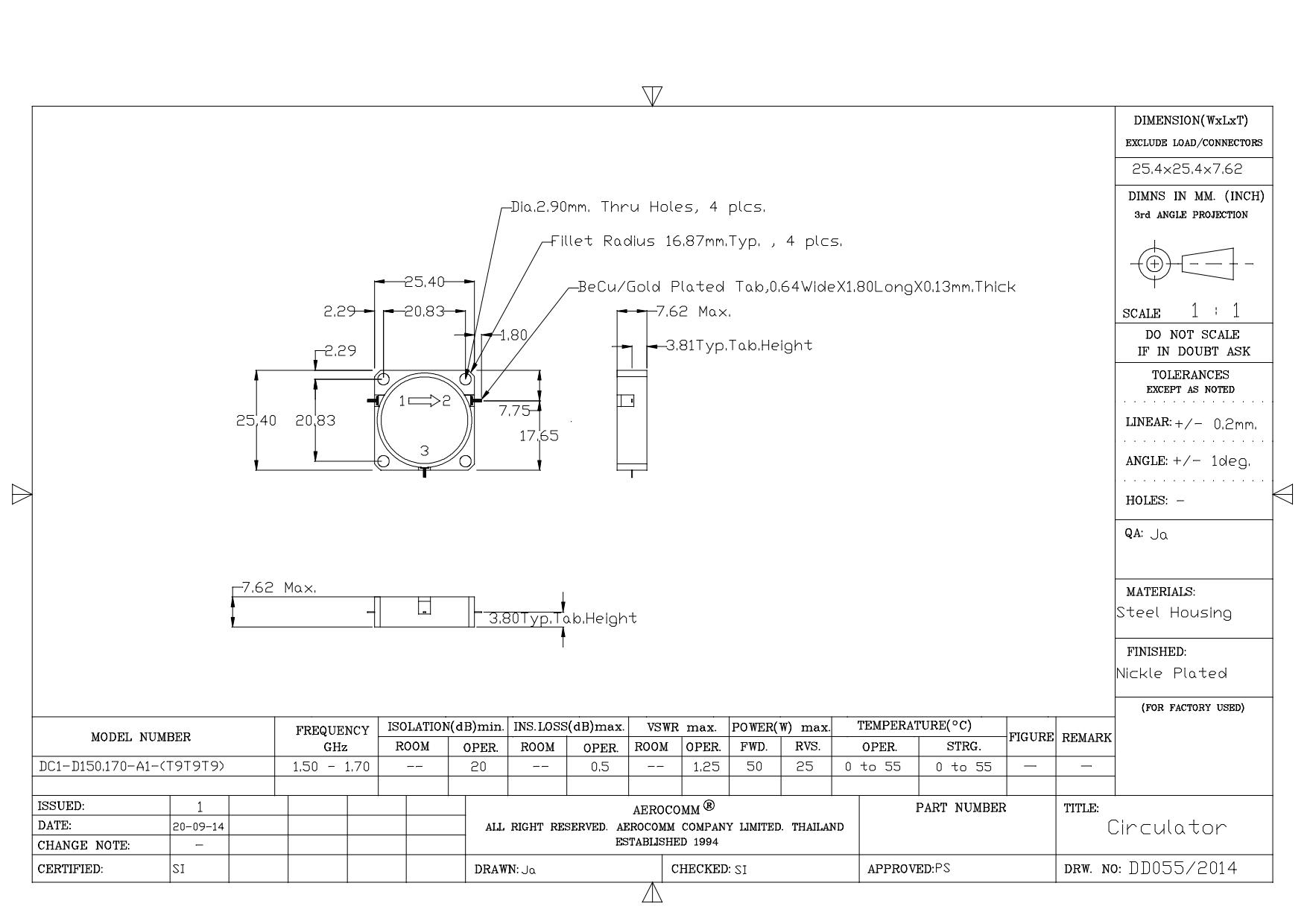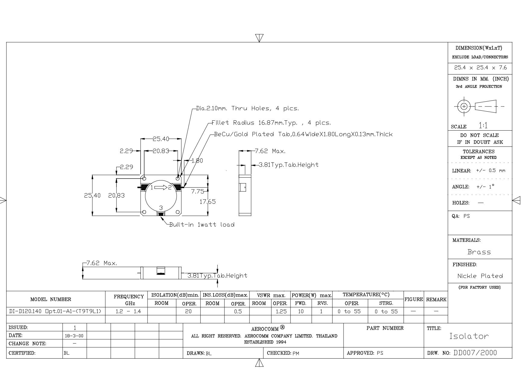 STRIPLINE DROP-IN JUNCTION ISOLATORS & CIRCULATORS, STANDARD