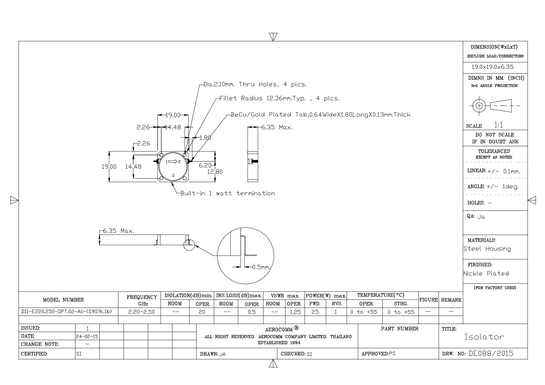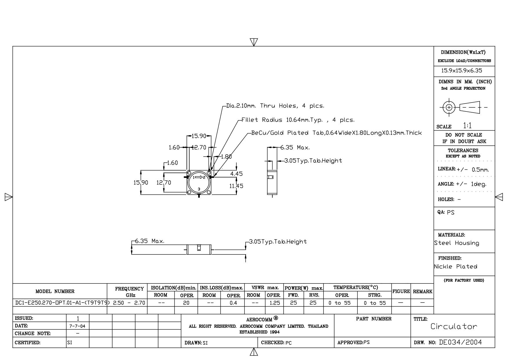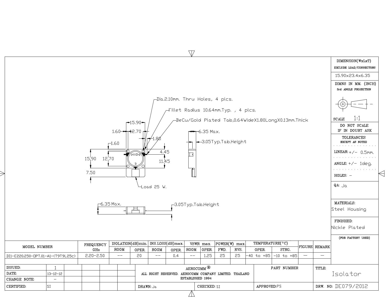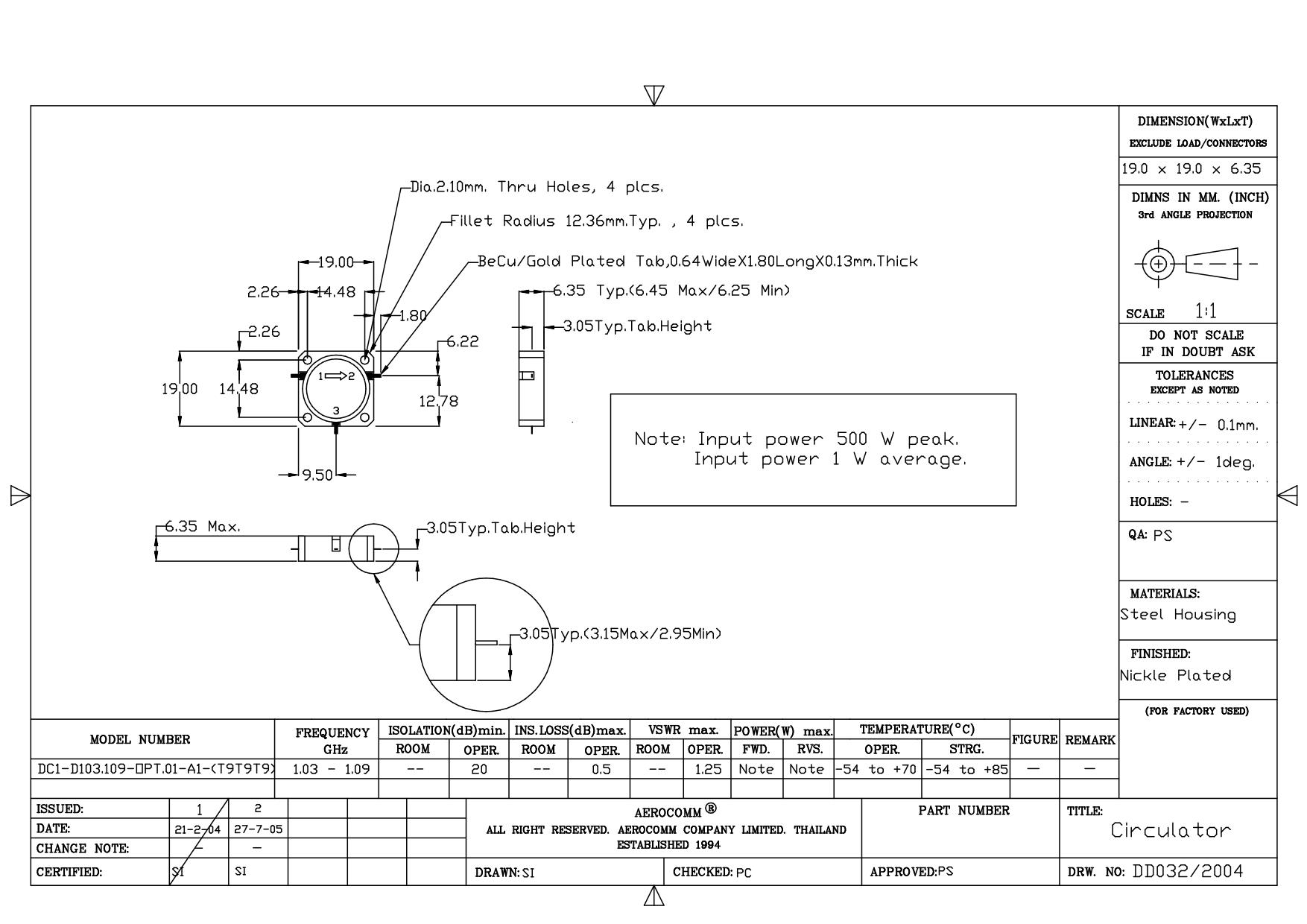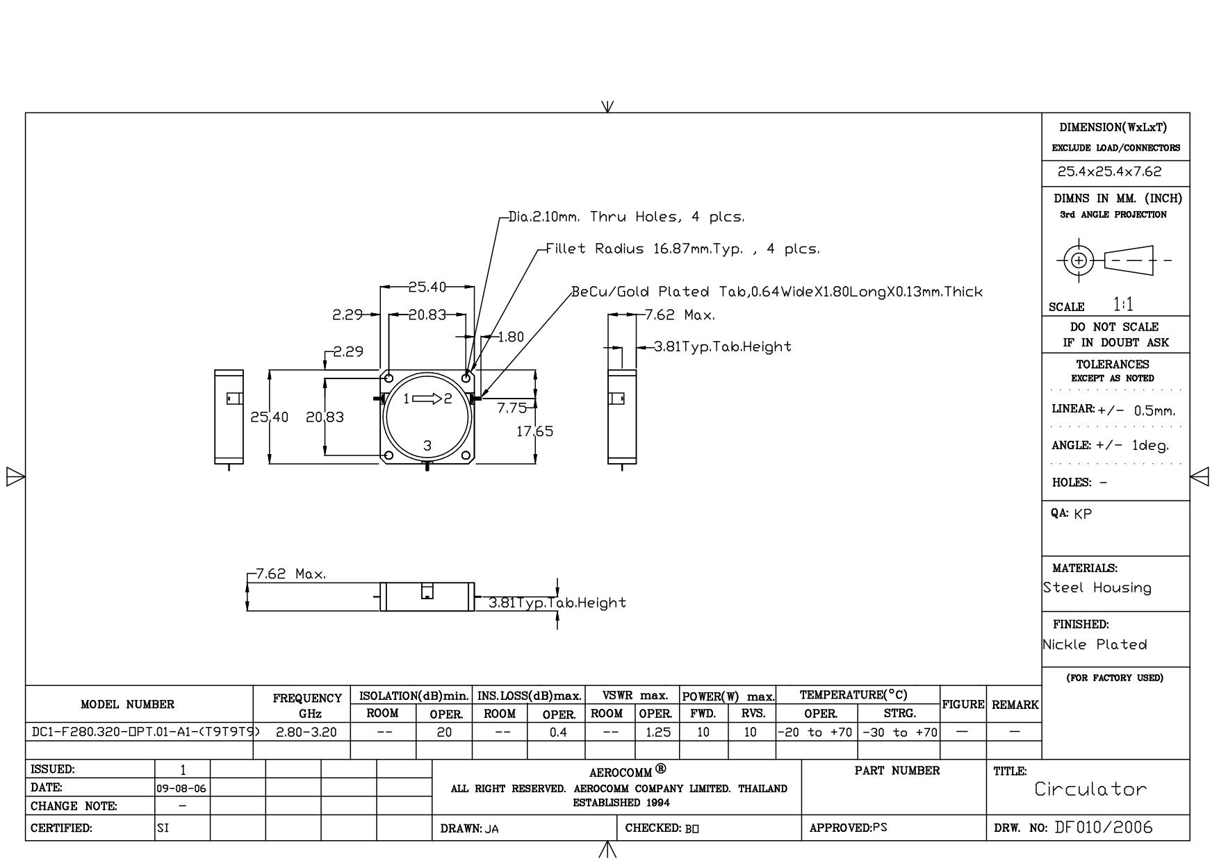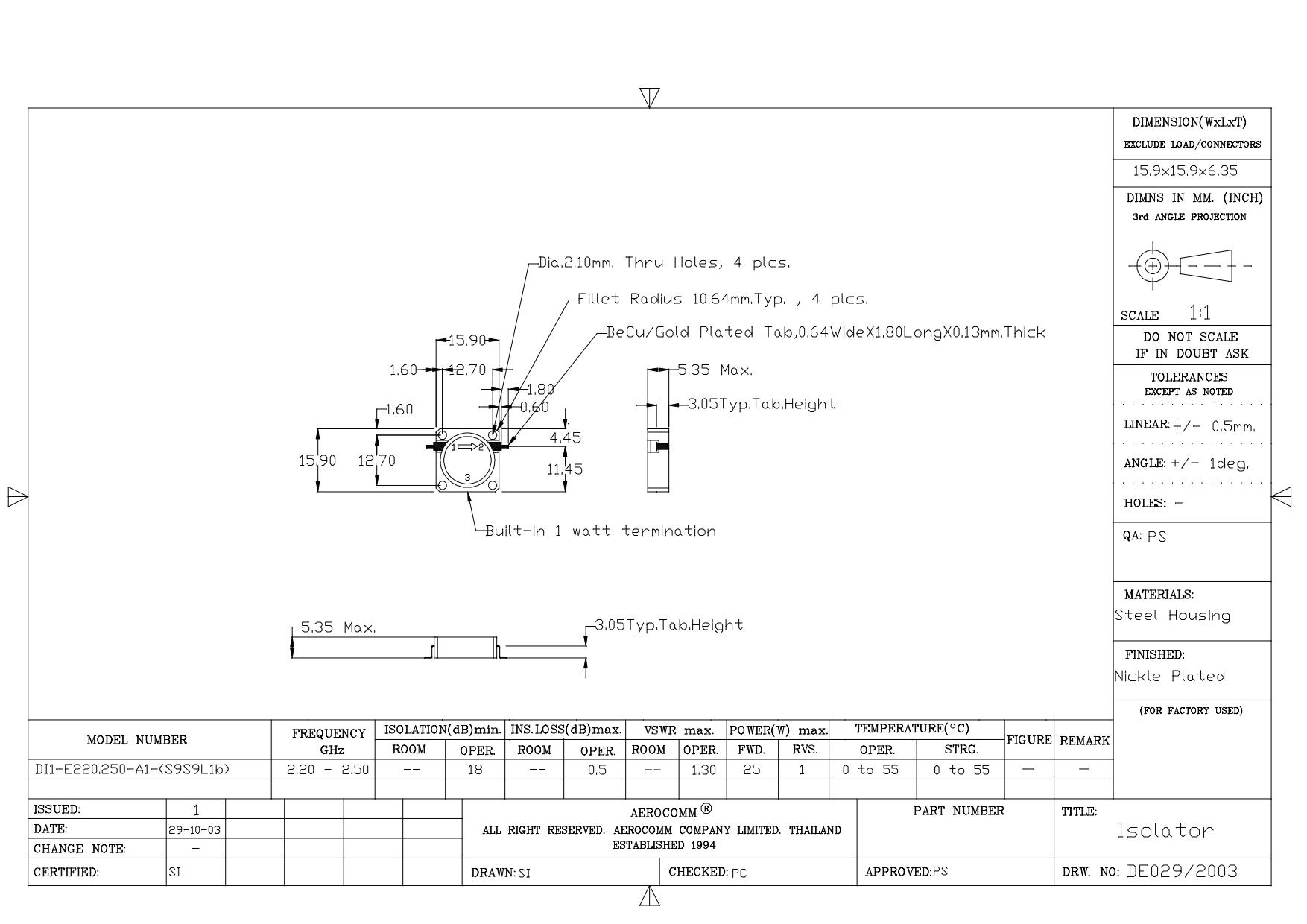 STRIPLINE DROP-IN JUNCTION ISOLATORS & CIRCULATORS, STANDARD