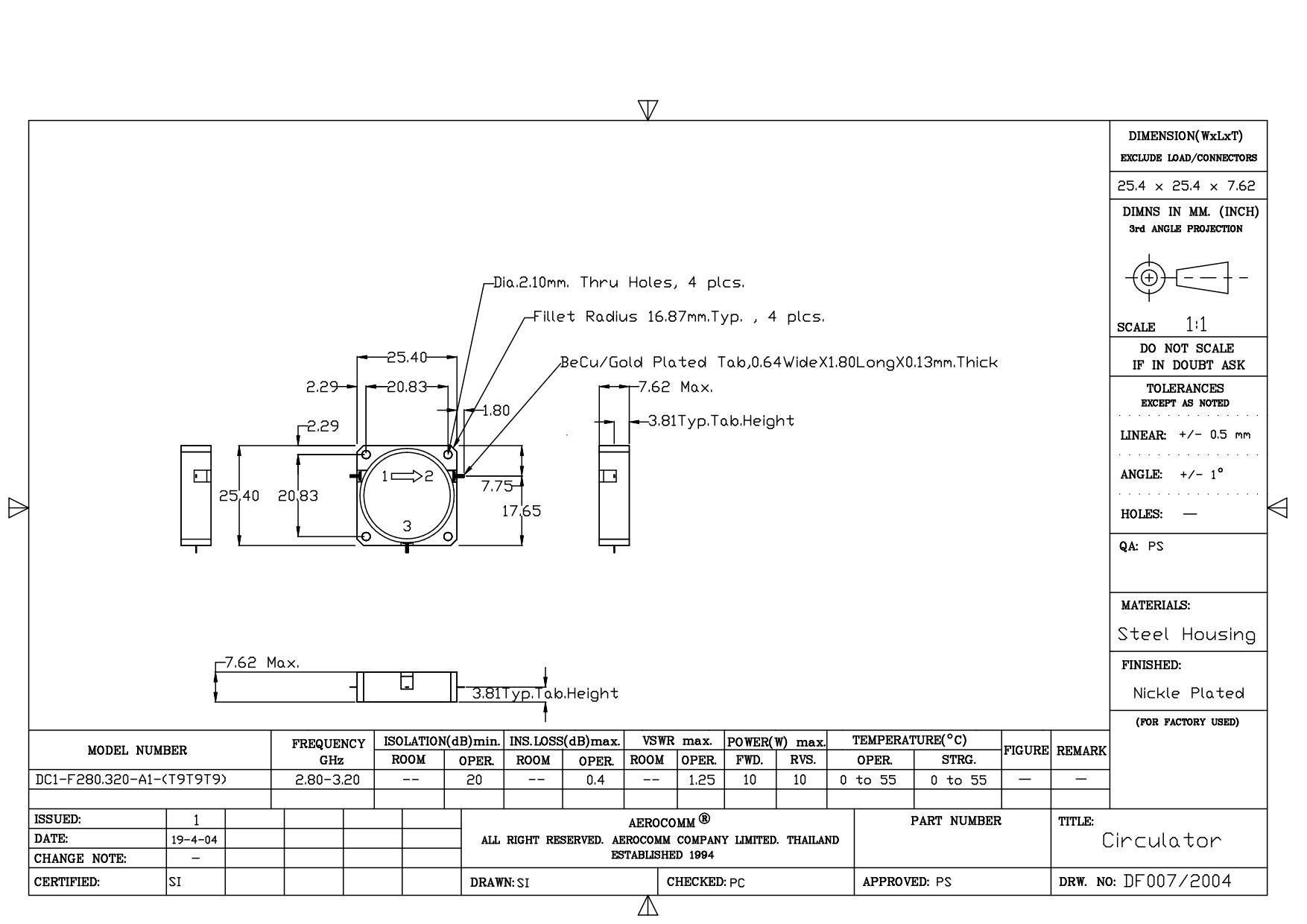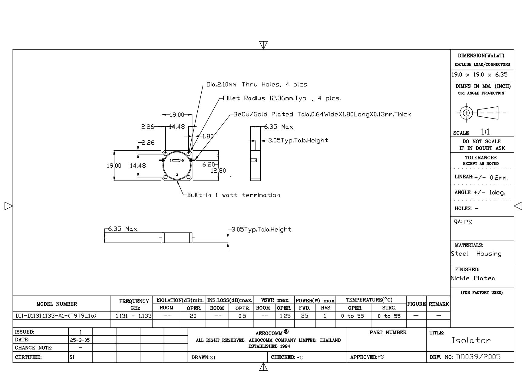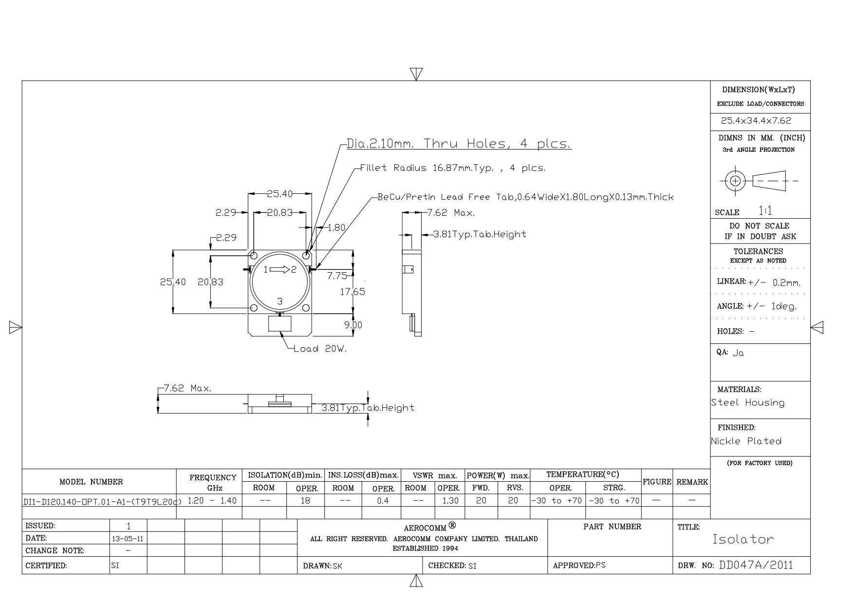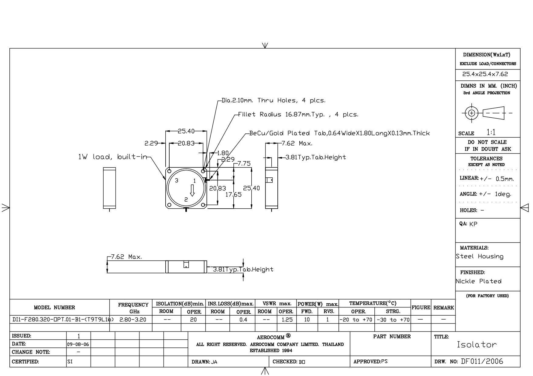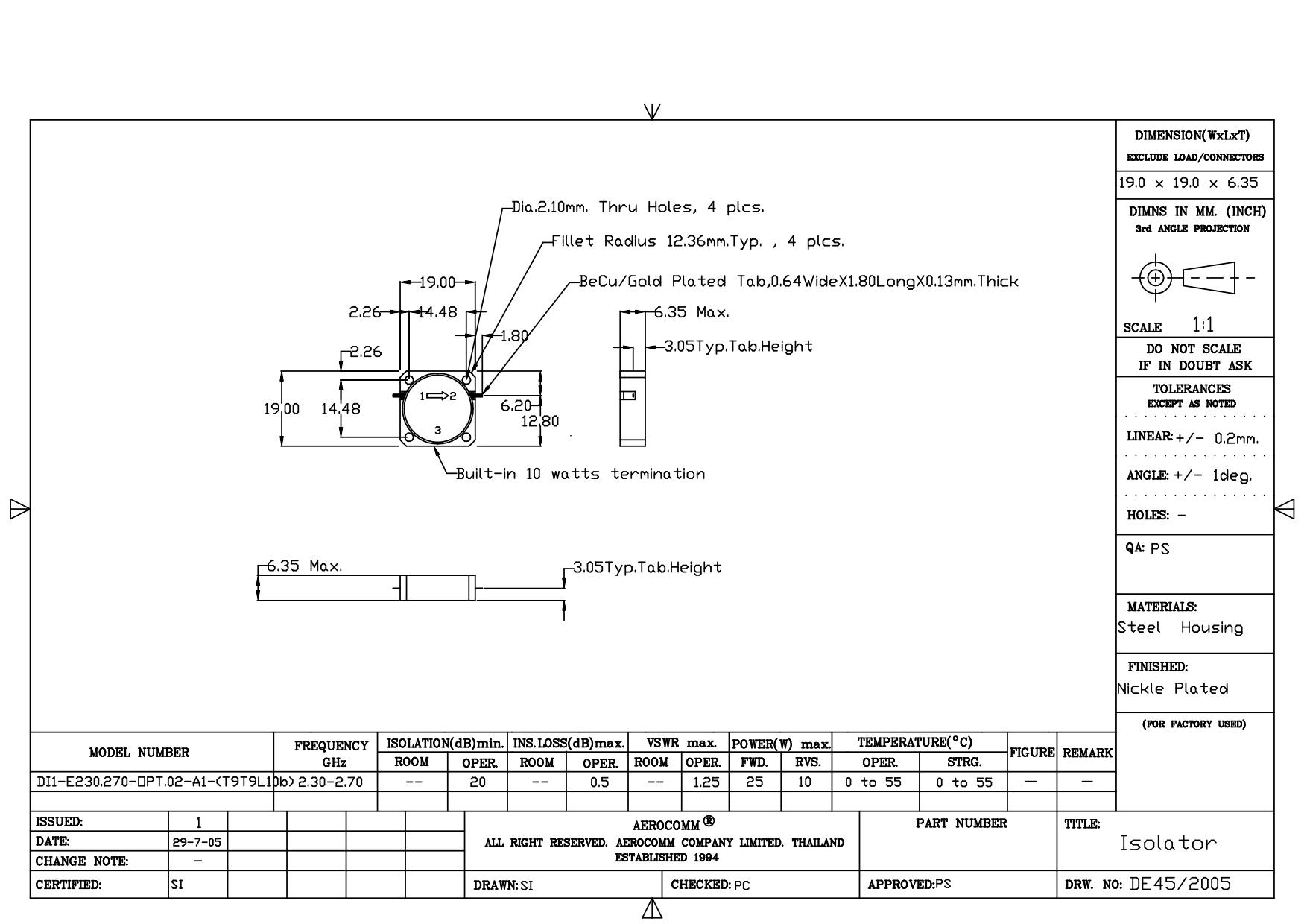 STRIPLINE DROP-IN JUNCTION ISOLATORS & CIRCULATORS, STANDARD
