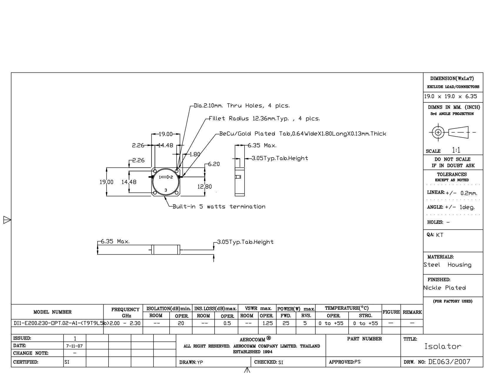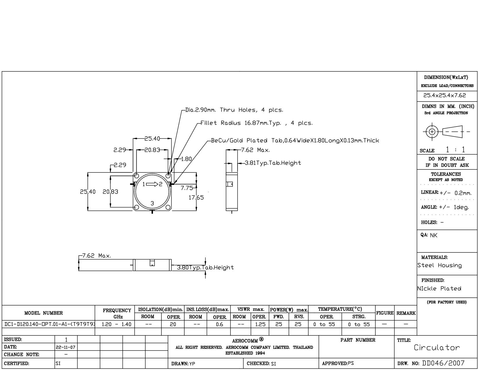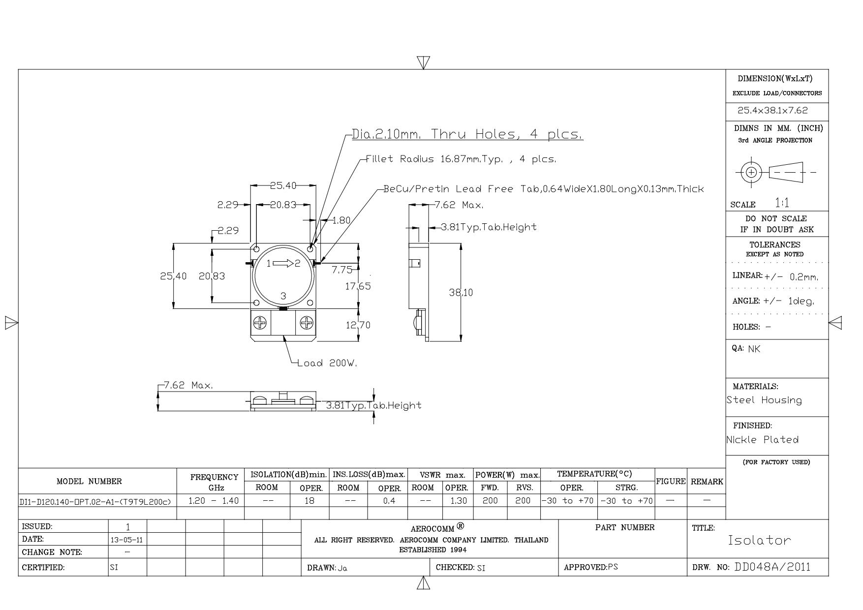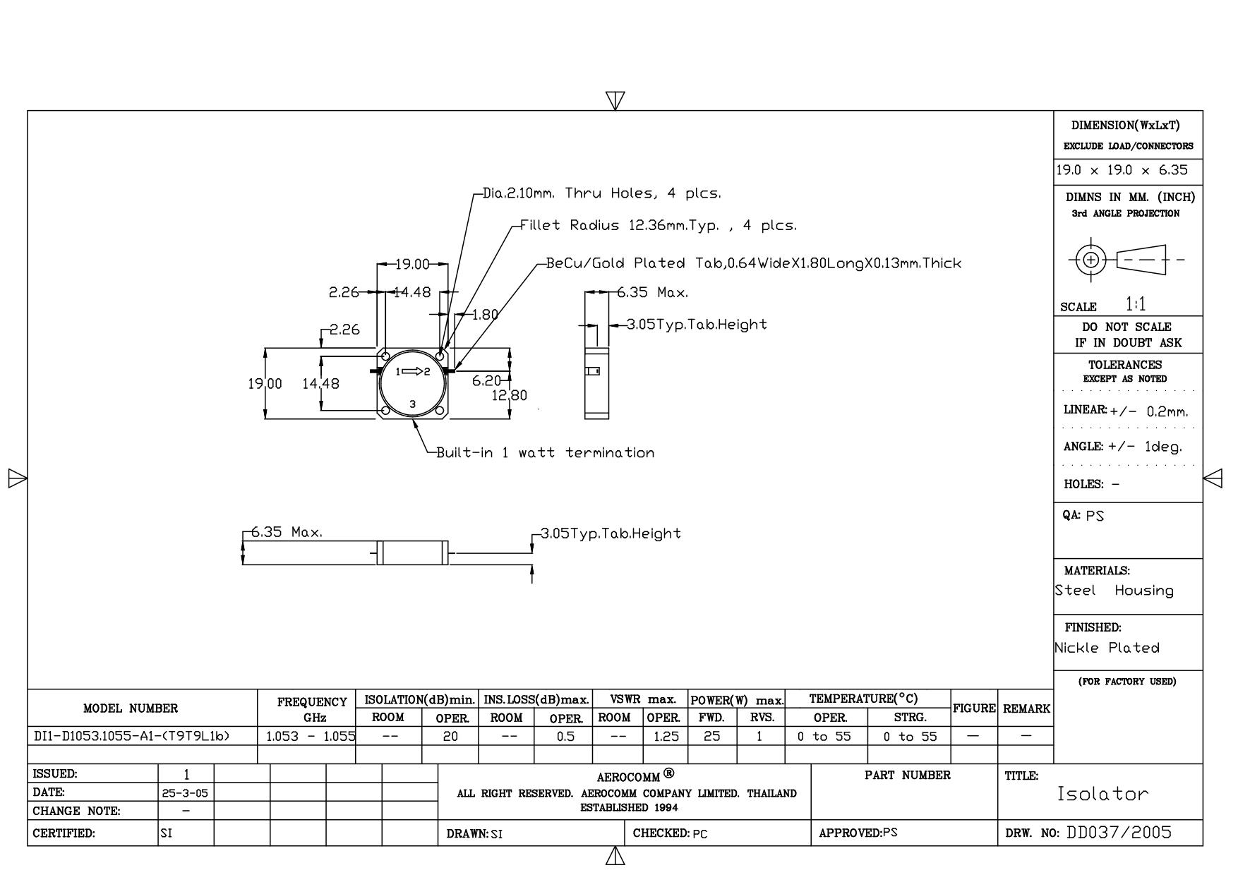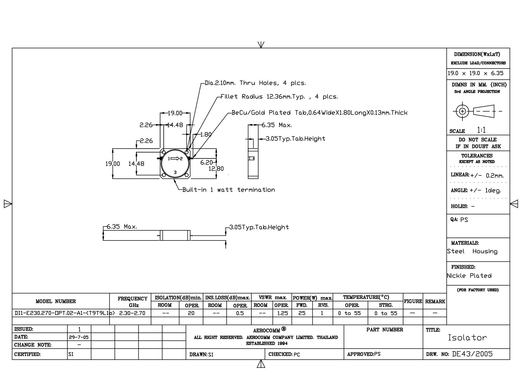 STRIPLINE DROP-IN JUNCTION ISOLATORS & CIRCULATORS, STANDARD