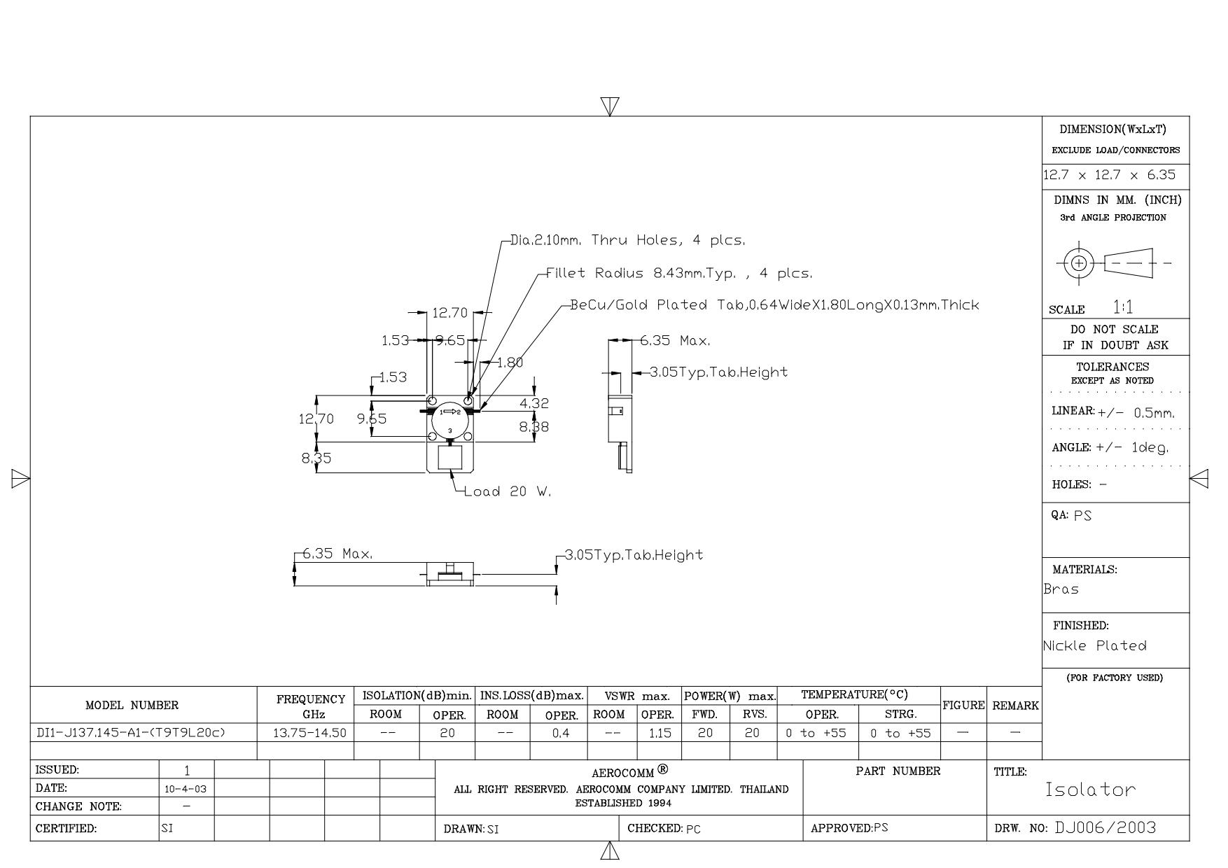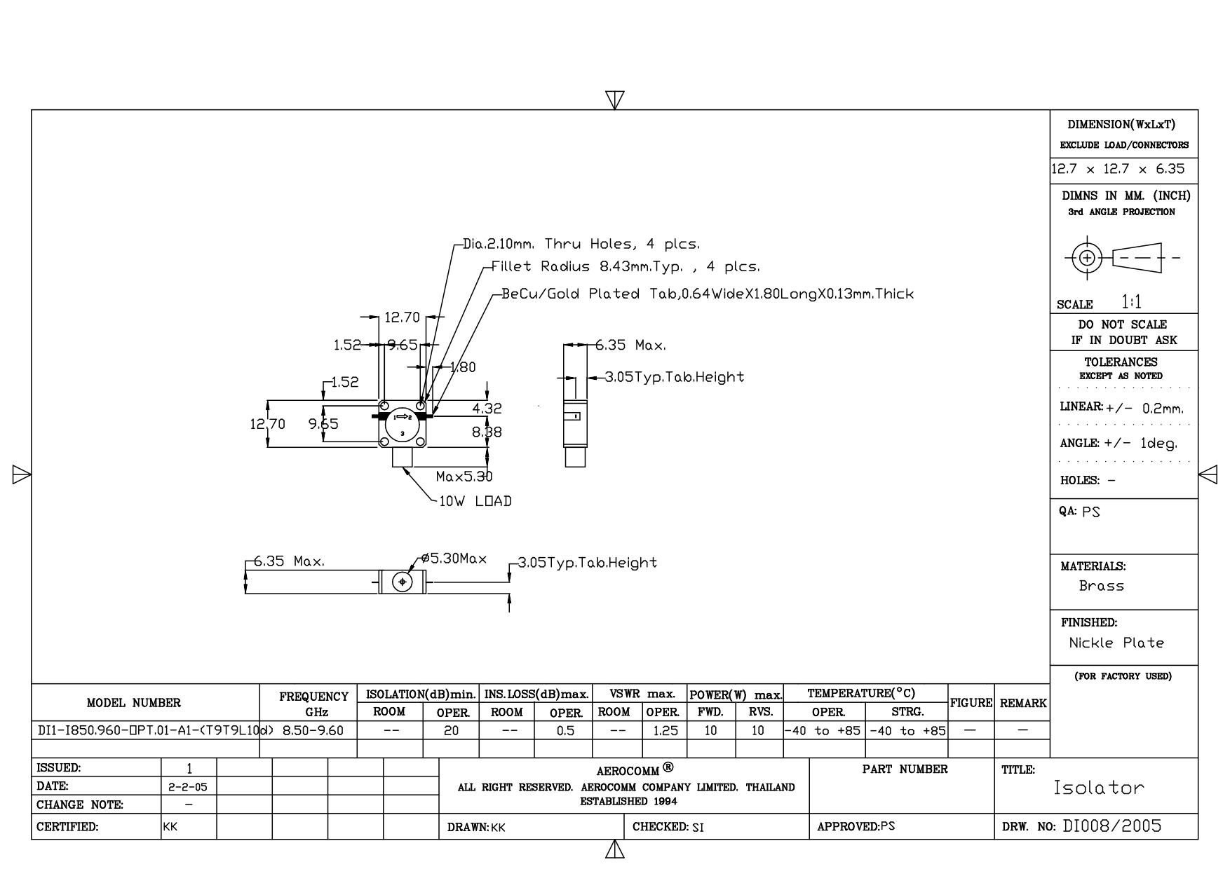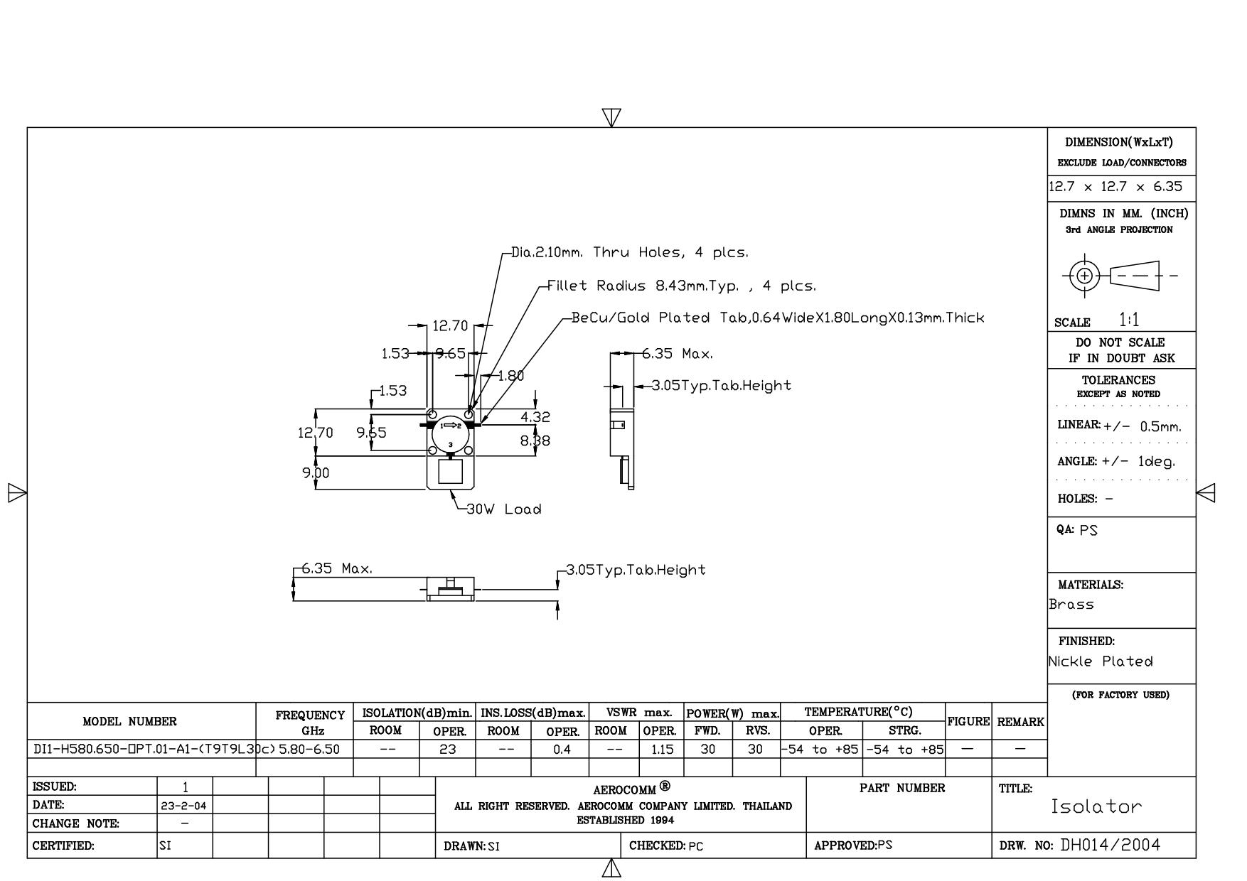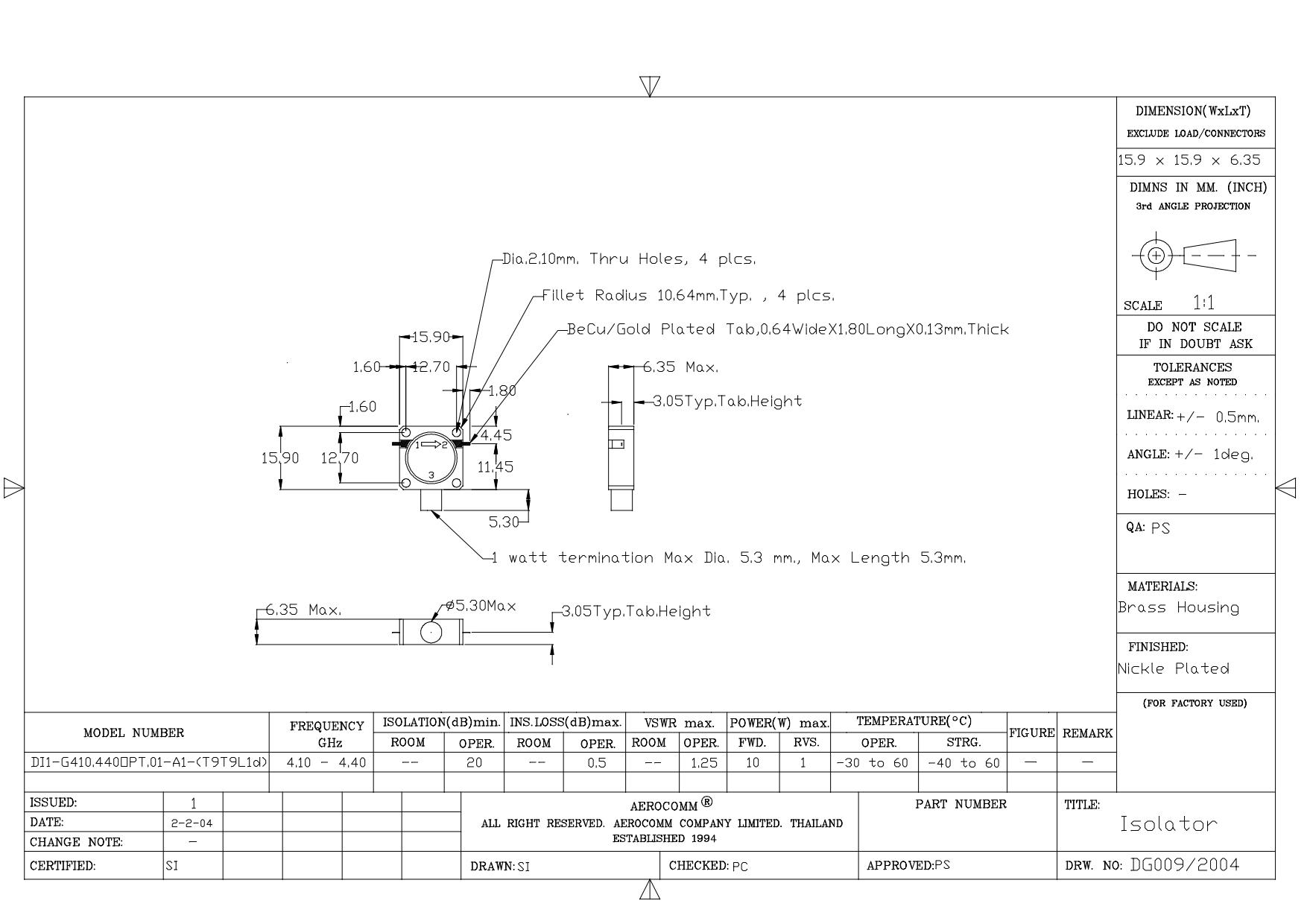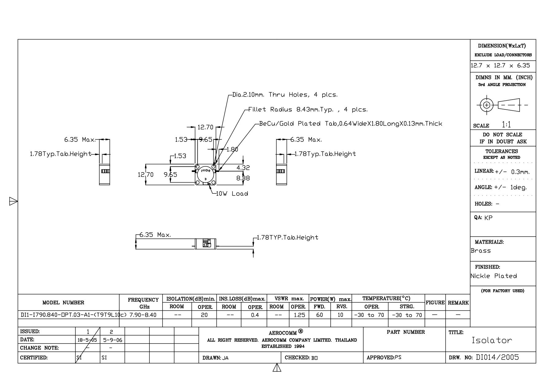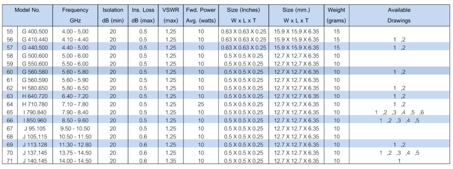 STRIPLINE DROP-IN JUNCTION ISOLATORS & CIRCULATORS, STANDARD