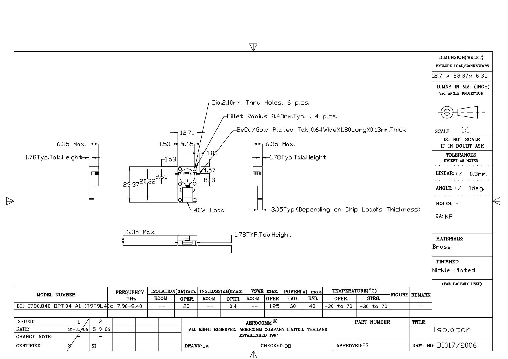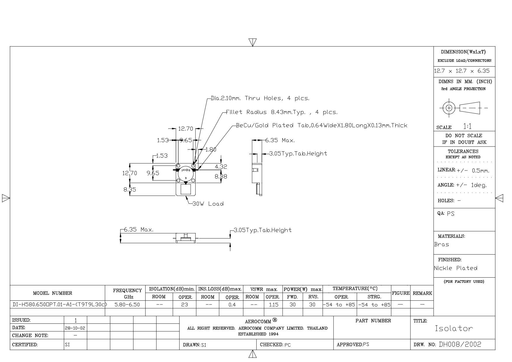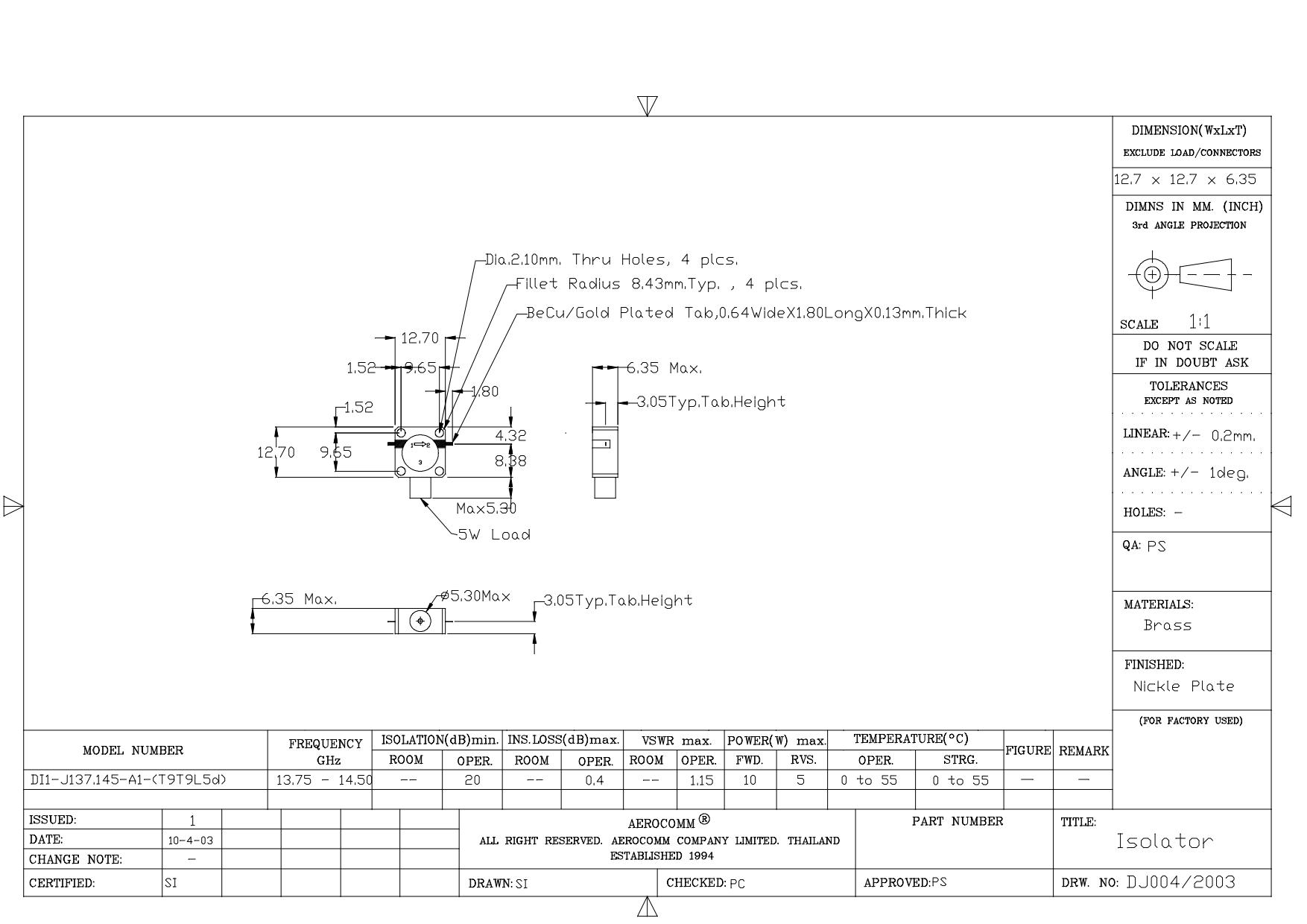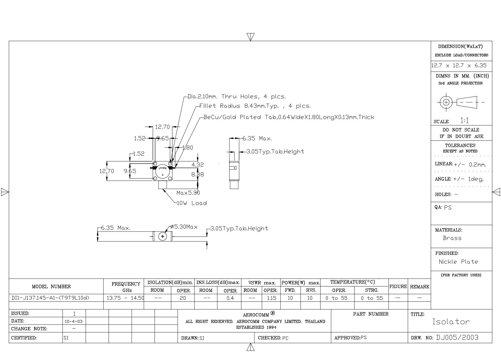 STRIPLINE DROP-IN JUNCTION ISOLATORS & CIRCULATORS, STANDARD