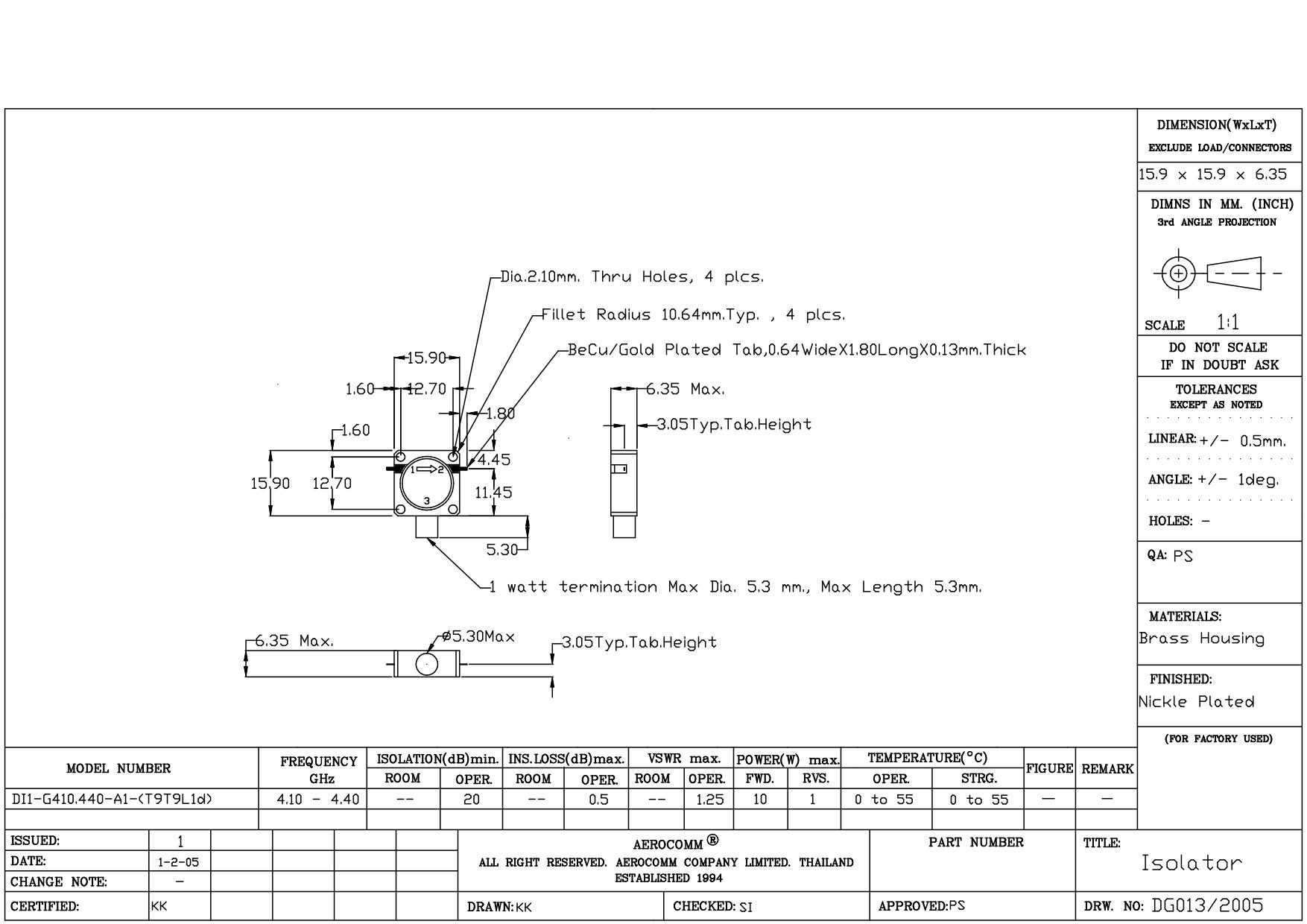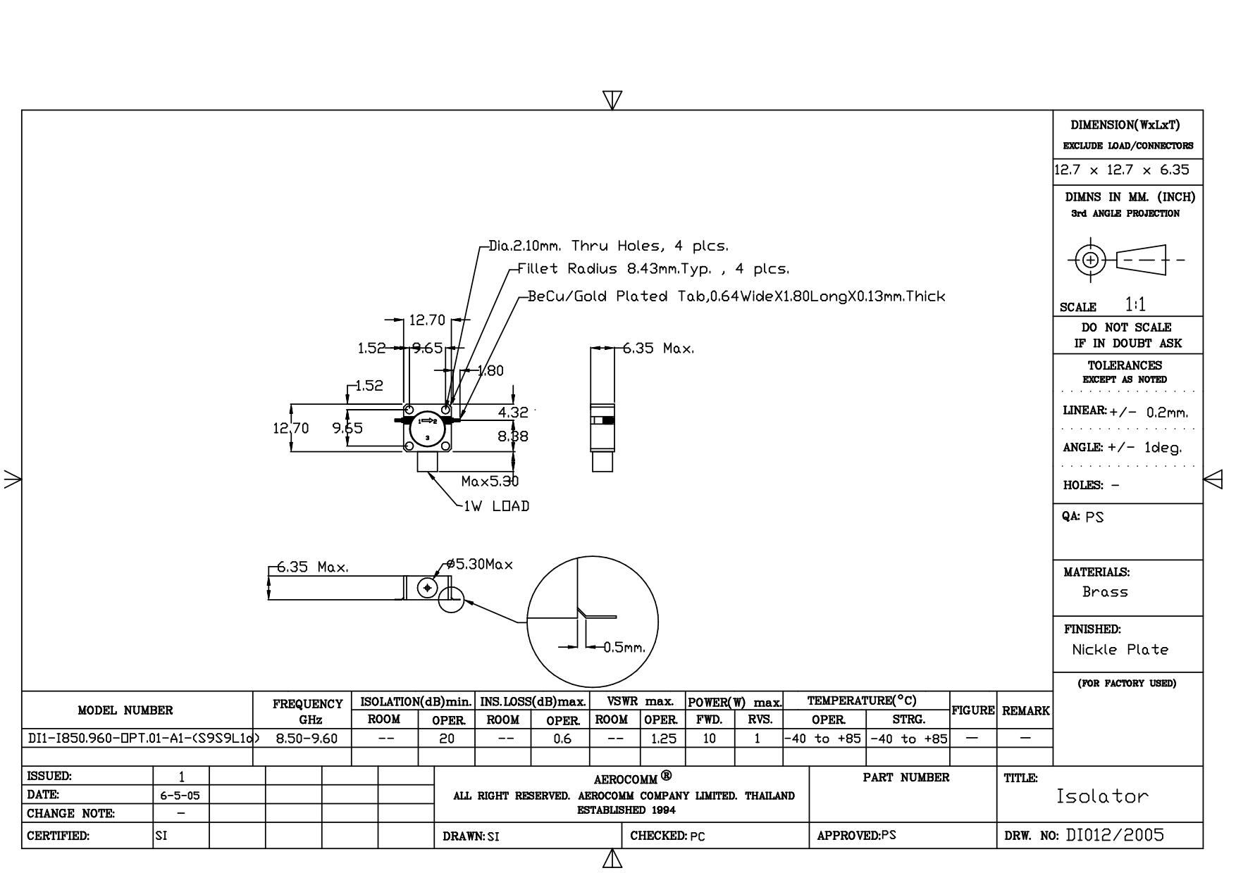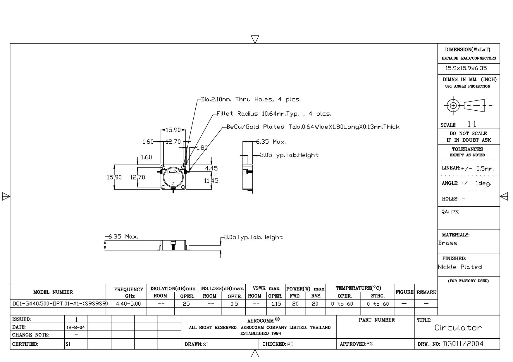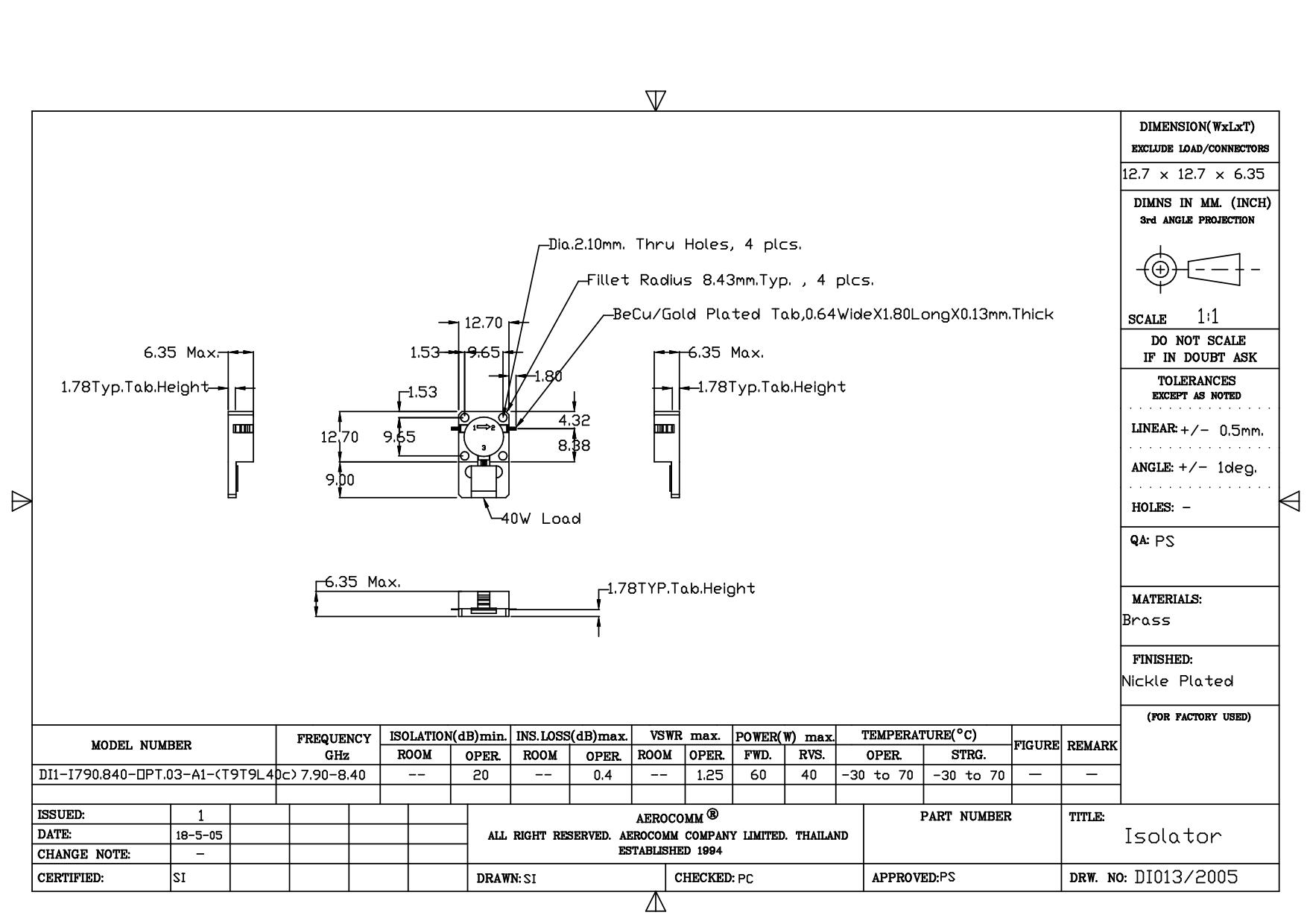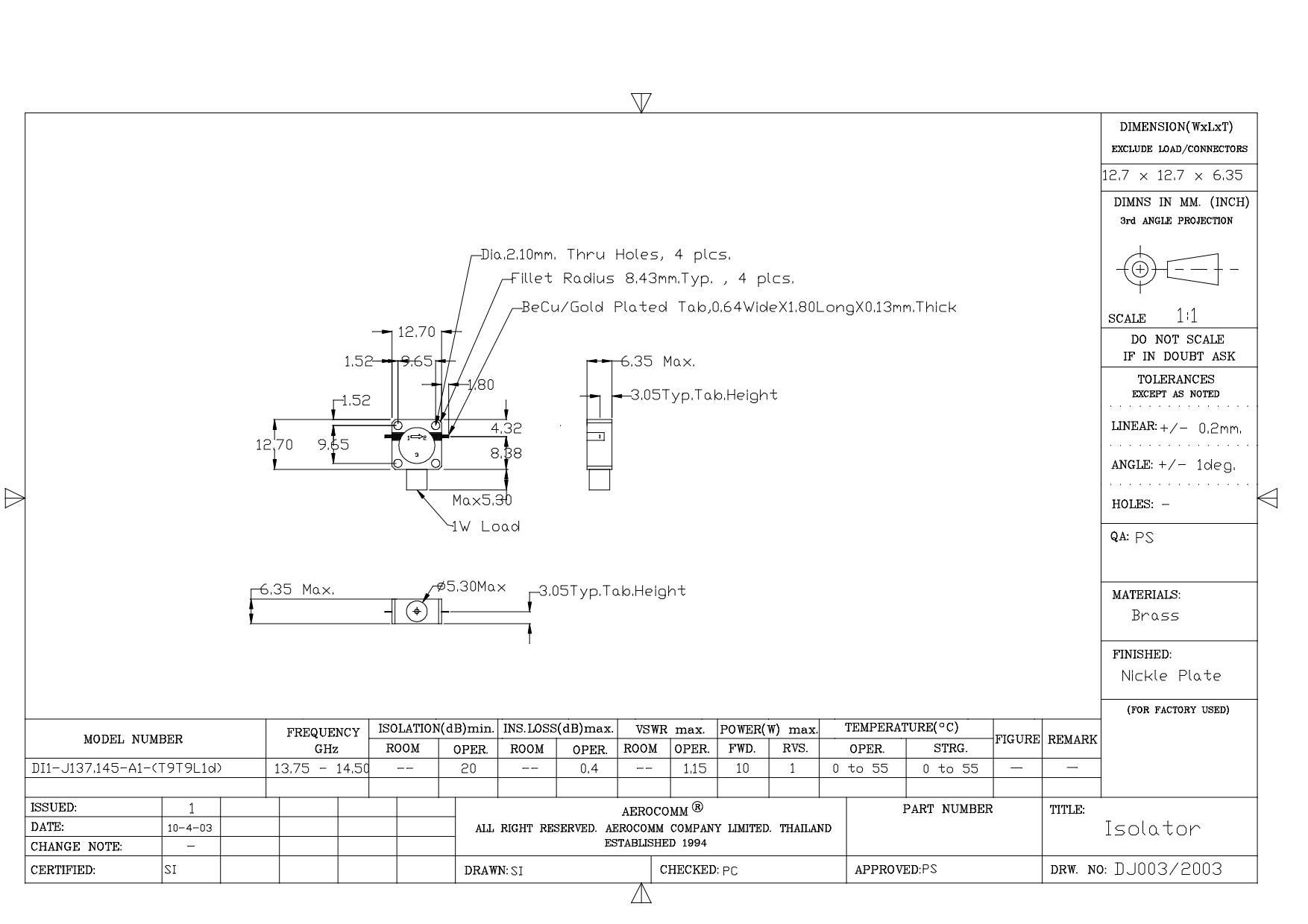 STRIPLINE DROP-IN JUNCTION ISOLATORS & CIRCULATORS, STANDARD