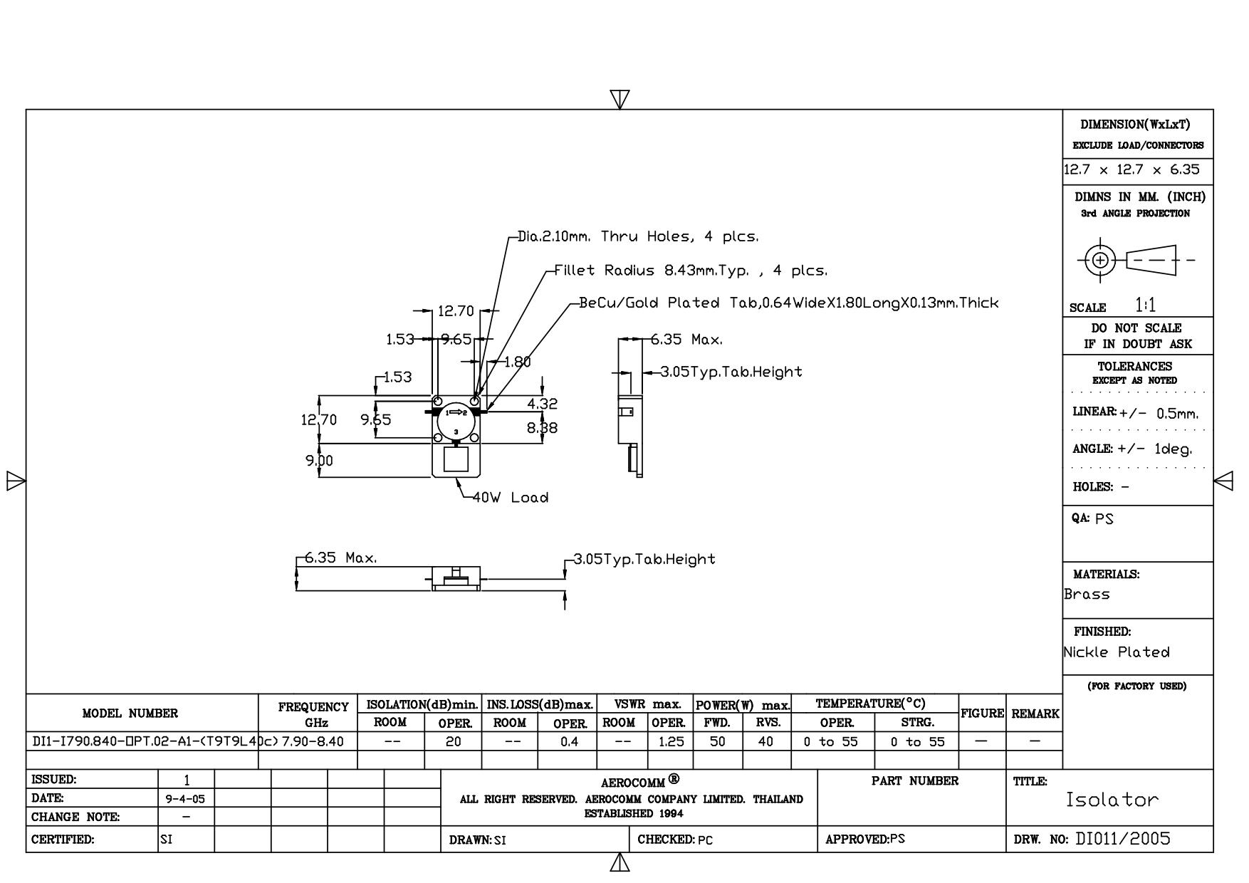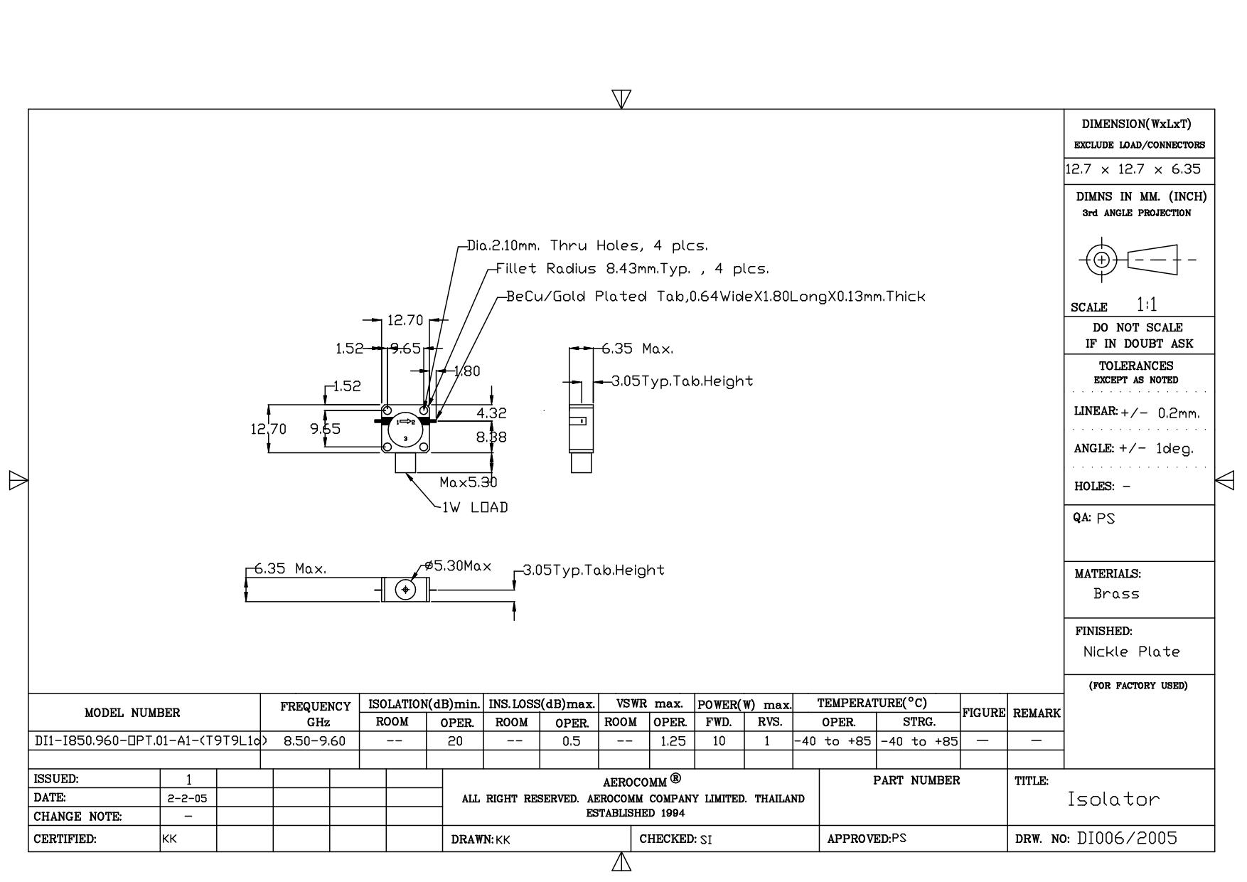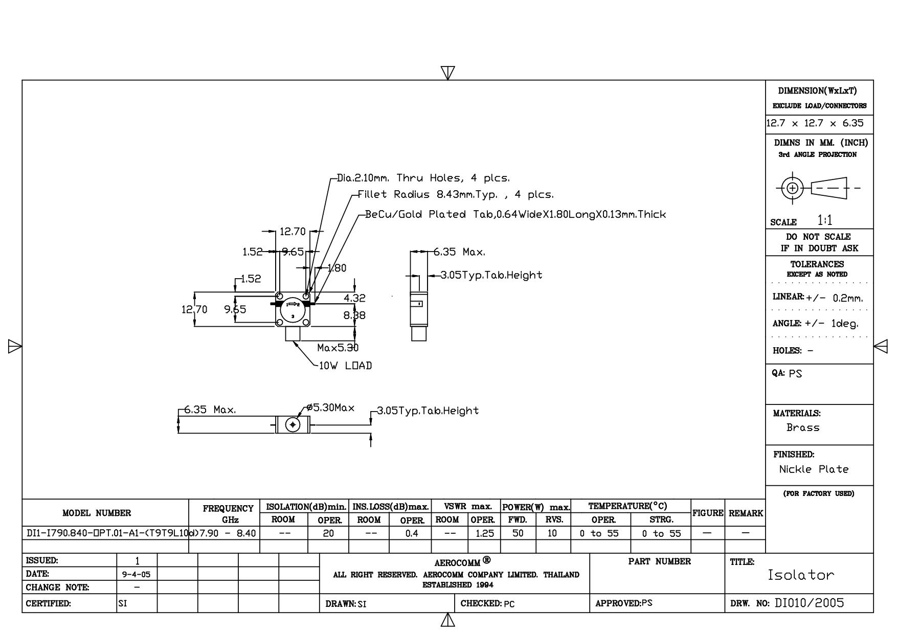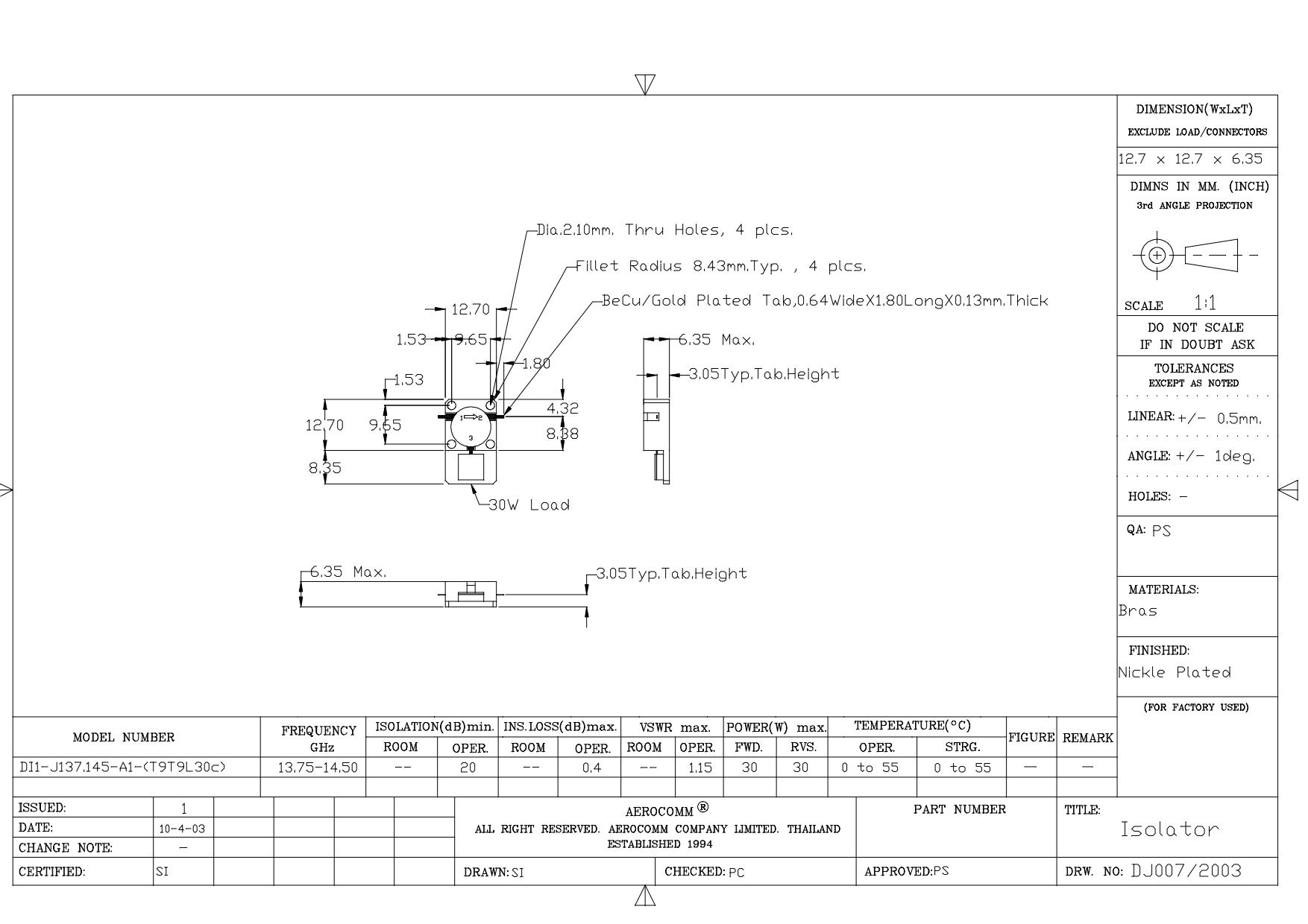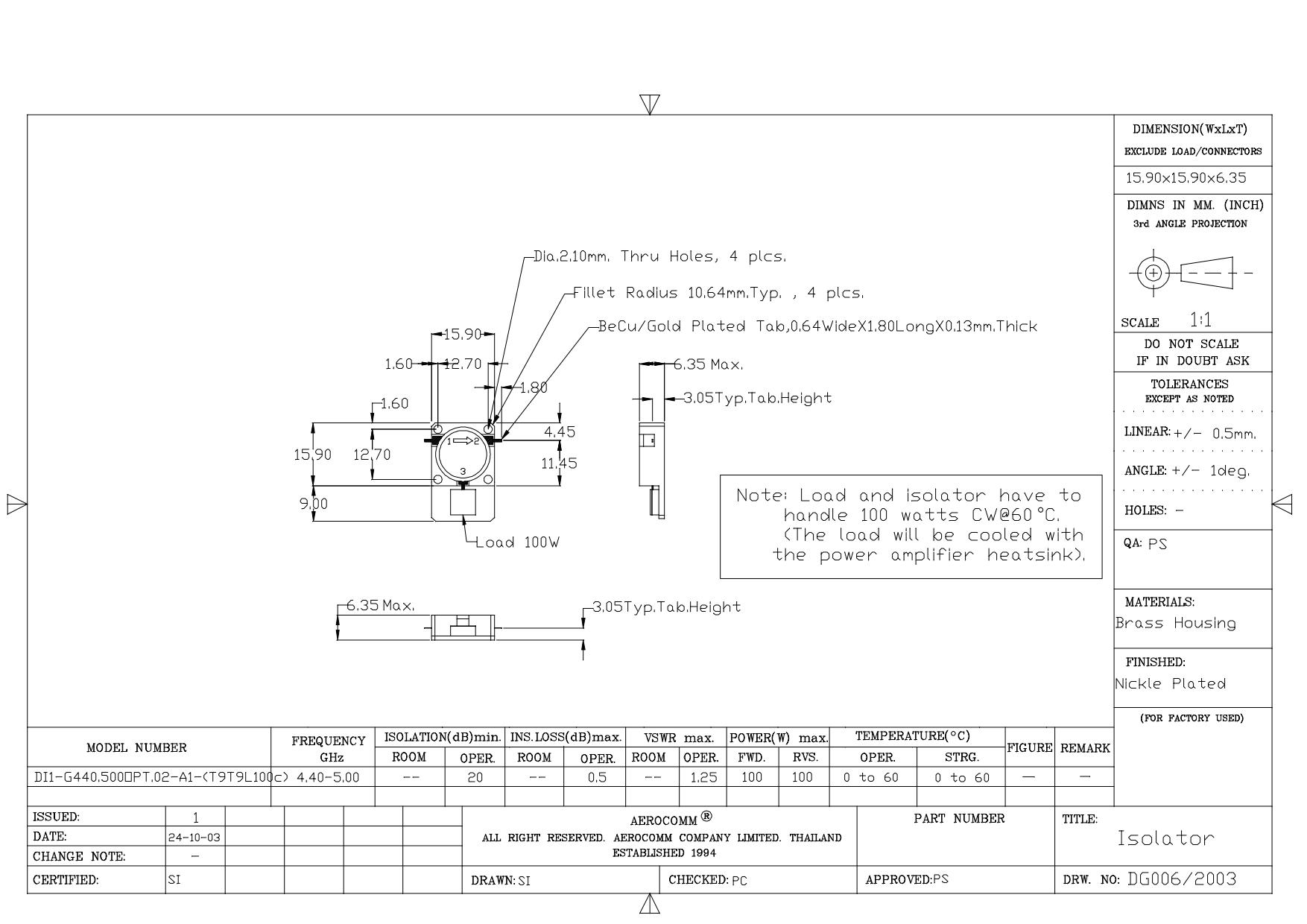 STRIPLINE DROP-IN JUNCTION ISOLATORS & CIRCULATORS, STANDARD