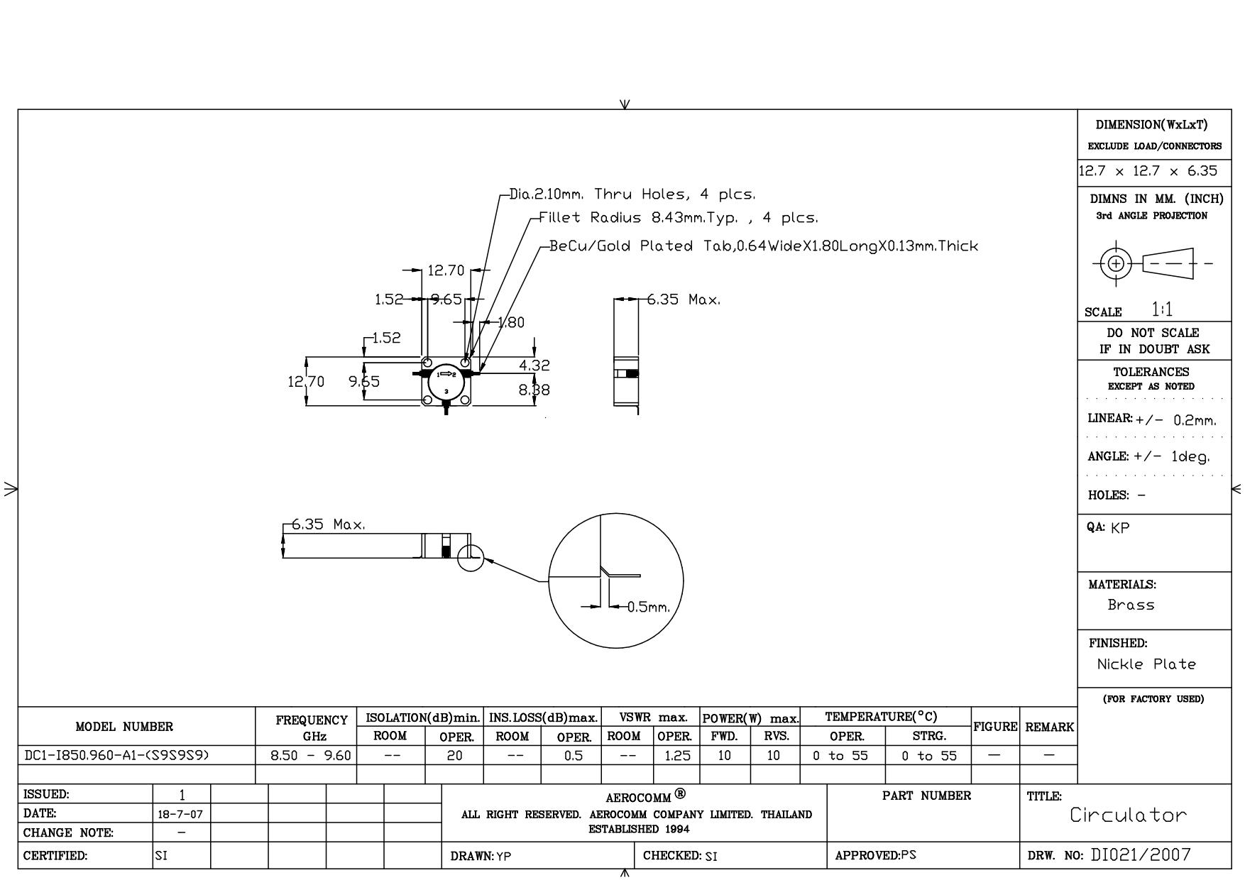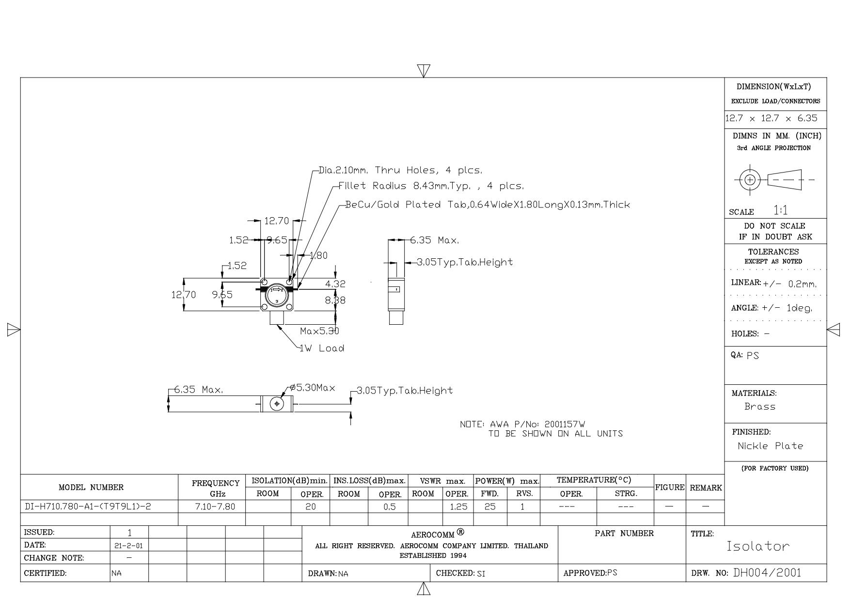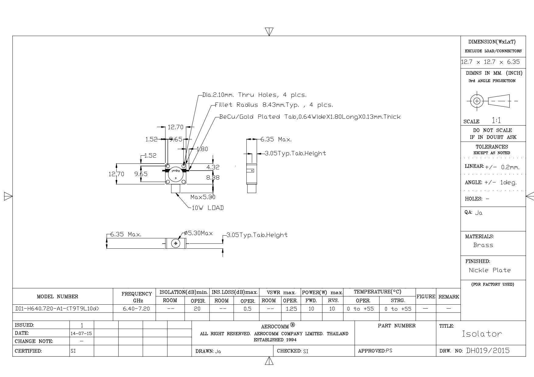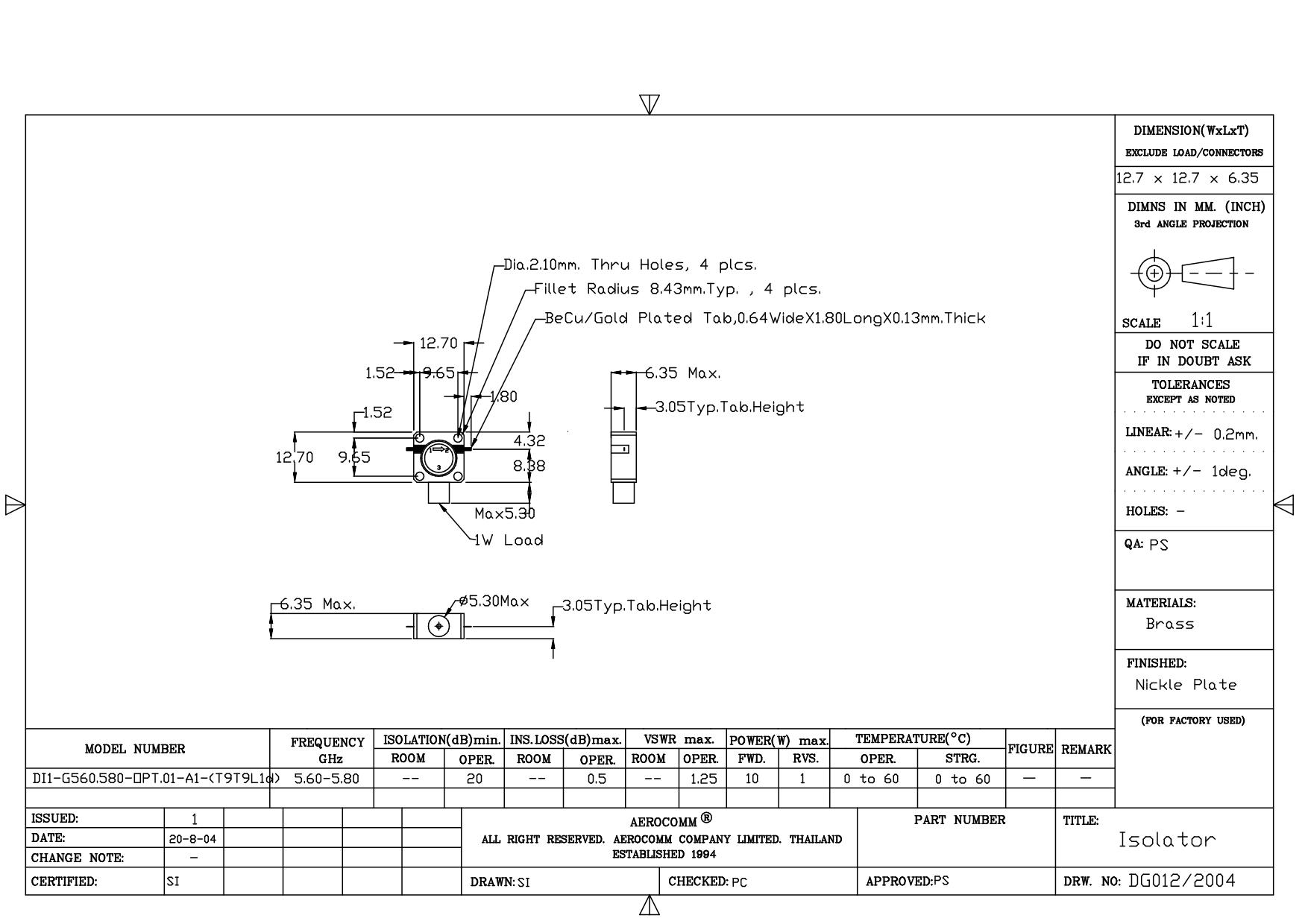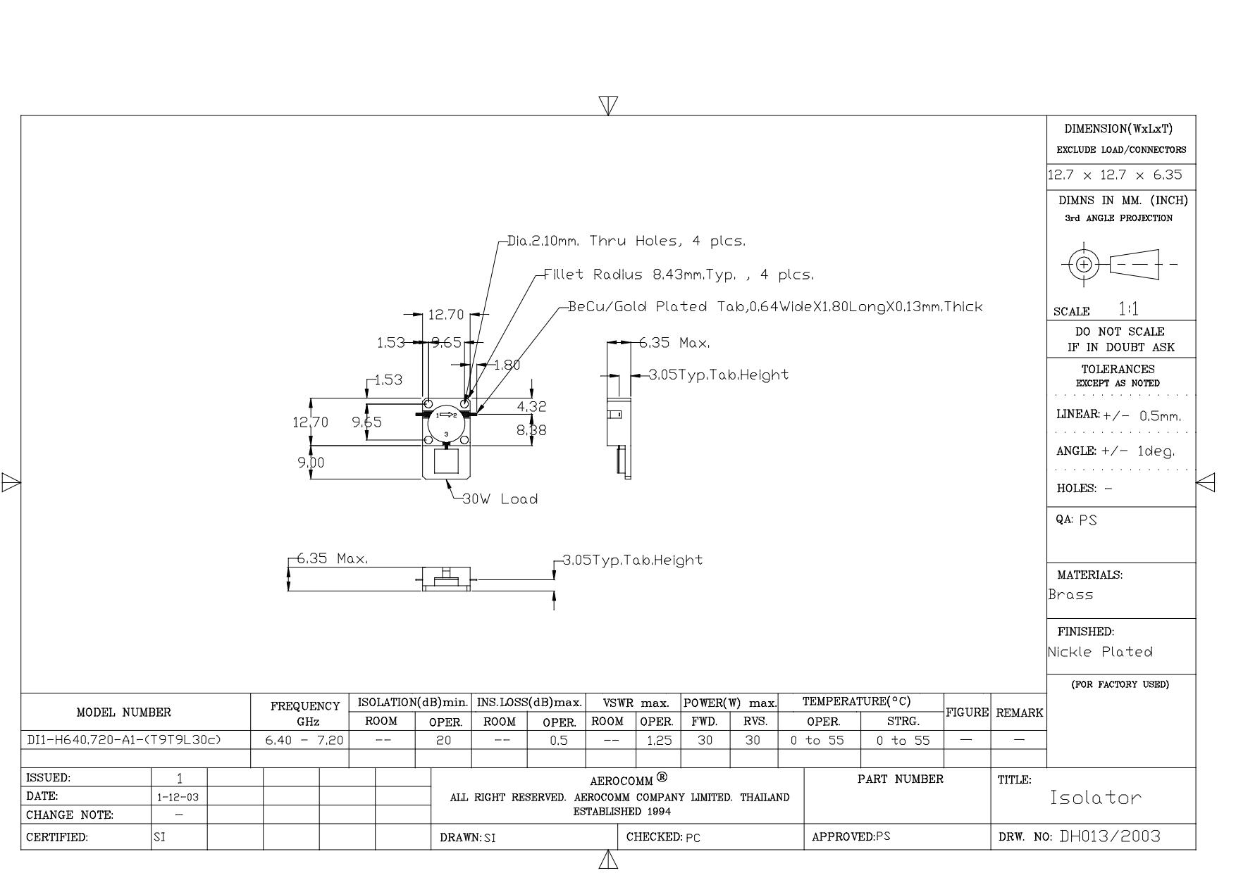 STRIPLINE DROP-IN JUNCTION ISOLATORS & CIRCULATORS, STANDARD