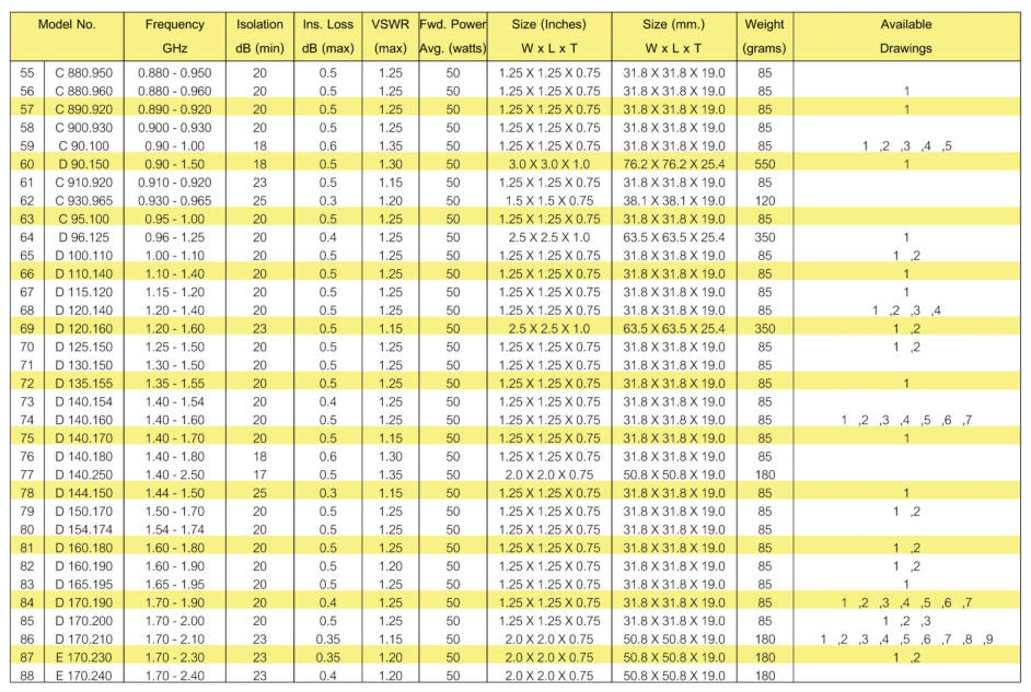 STANDARD NARROWBAND COAXIAL 3 PORT JUNCTION ISOLATORS & CIRCULATORS (continued)These models cover various narrow bandwidth. Available drawings can be viewed by clicking on red box. Please contact usfor other frequency ranges or non-standard requirements.